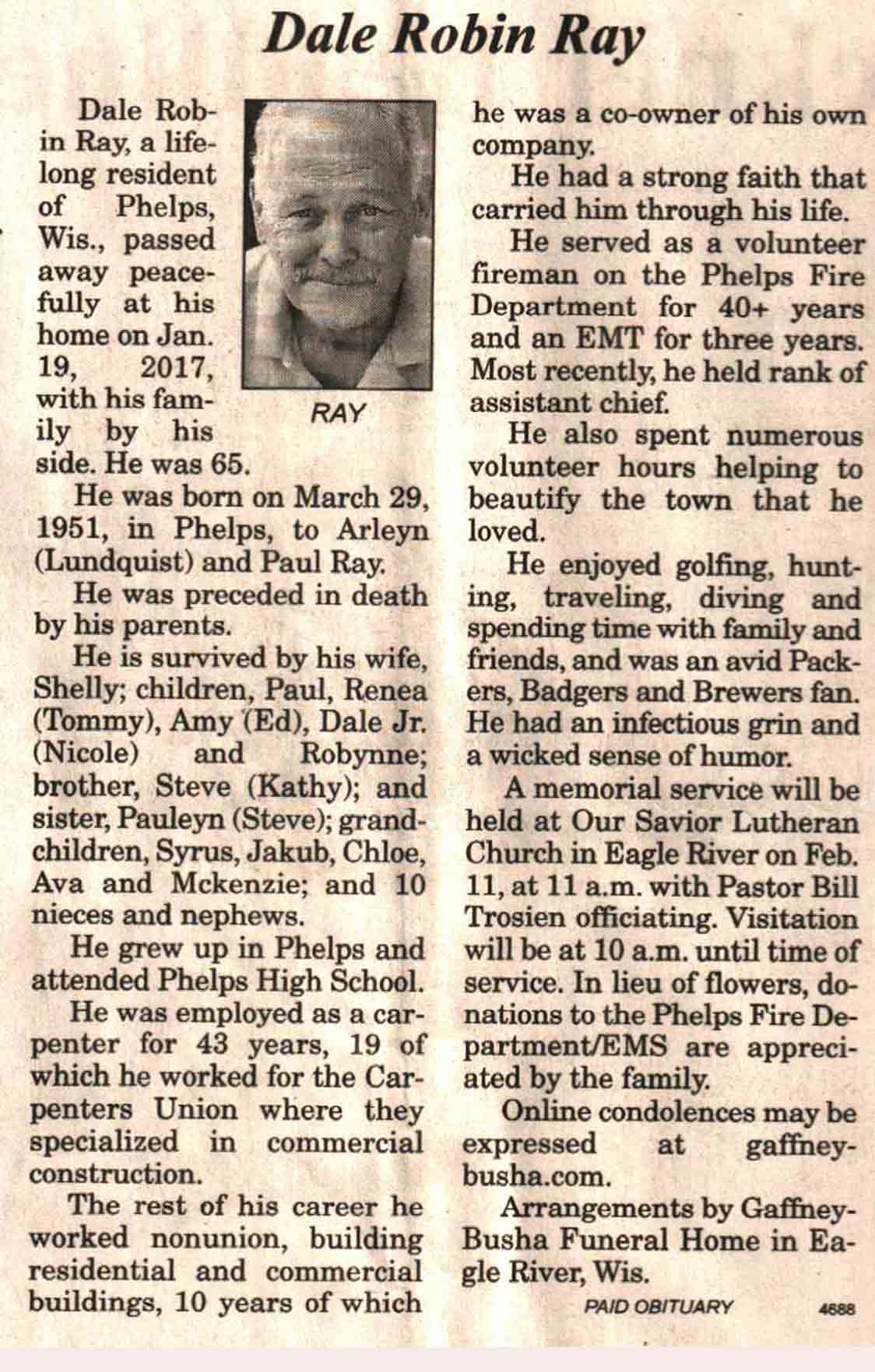 | Ray | Dale Robin | 29 Mar 1951 | 19 Jan 2017 | V N-R | 25 Jan 2017 | 6A |