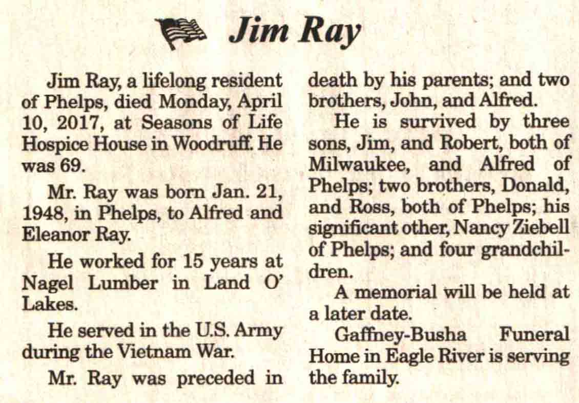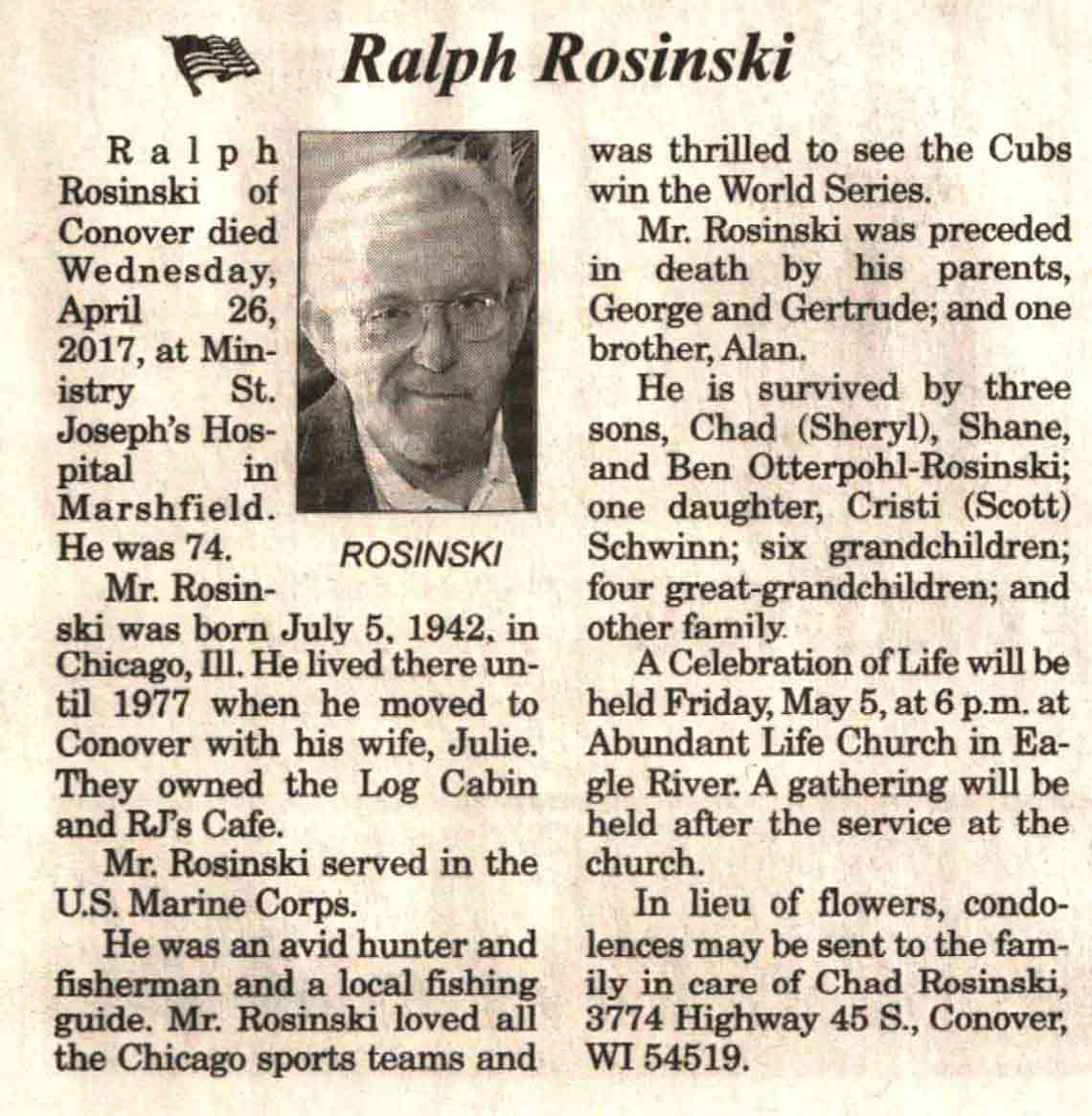 | Rosinski | Ralph | 05 Jul 1942 | 26 Apr 2017 | V N-R | 03 May 2017 | 4 |