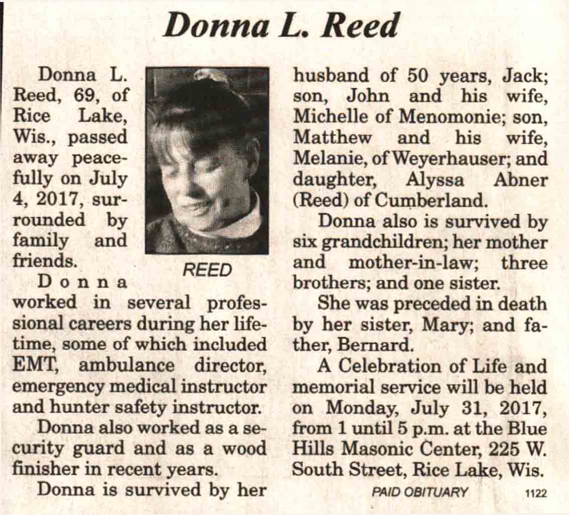 | Reed | Donna L | c 1948 | 04 Jul 2017 | V N-R | 19 Jul 2017 | 4A |