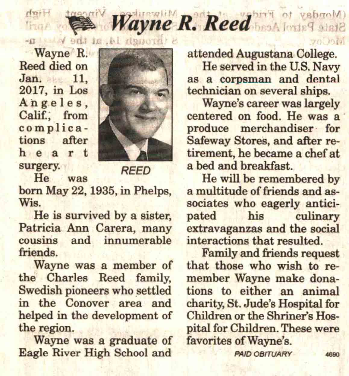 | Reed | Wayne R | 22 May 1935 | 11 Jan 2017 | V N-R | 01 Feb 2017 | 4 |