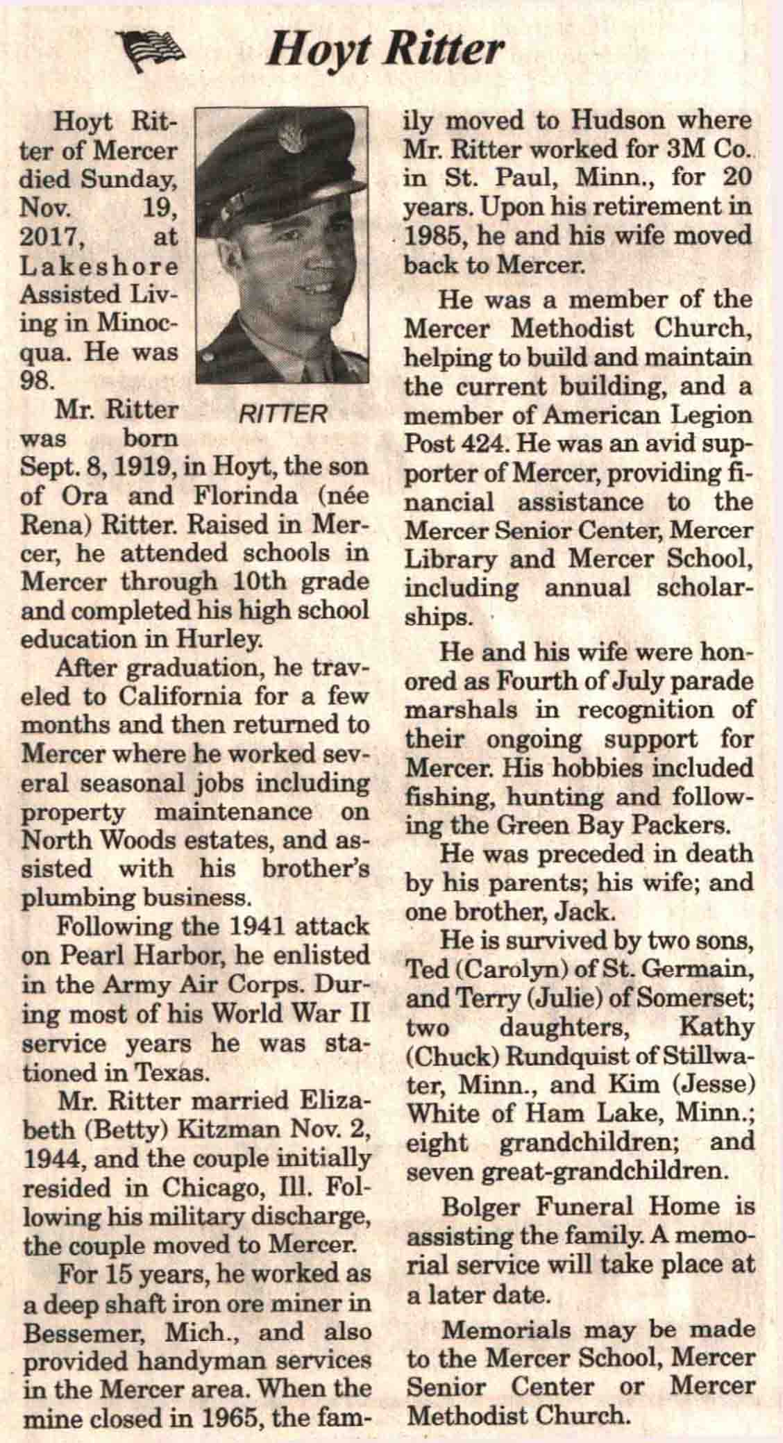 | Ritter | Hoyt | 08 Sep 1919 | 17 Nov 2017 | V N-R | 22 Nov 2017 | 4A |