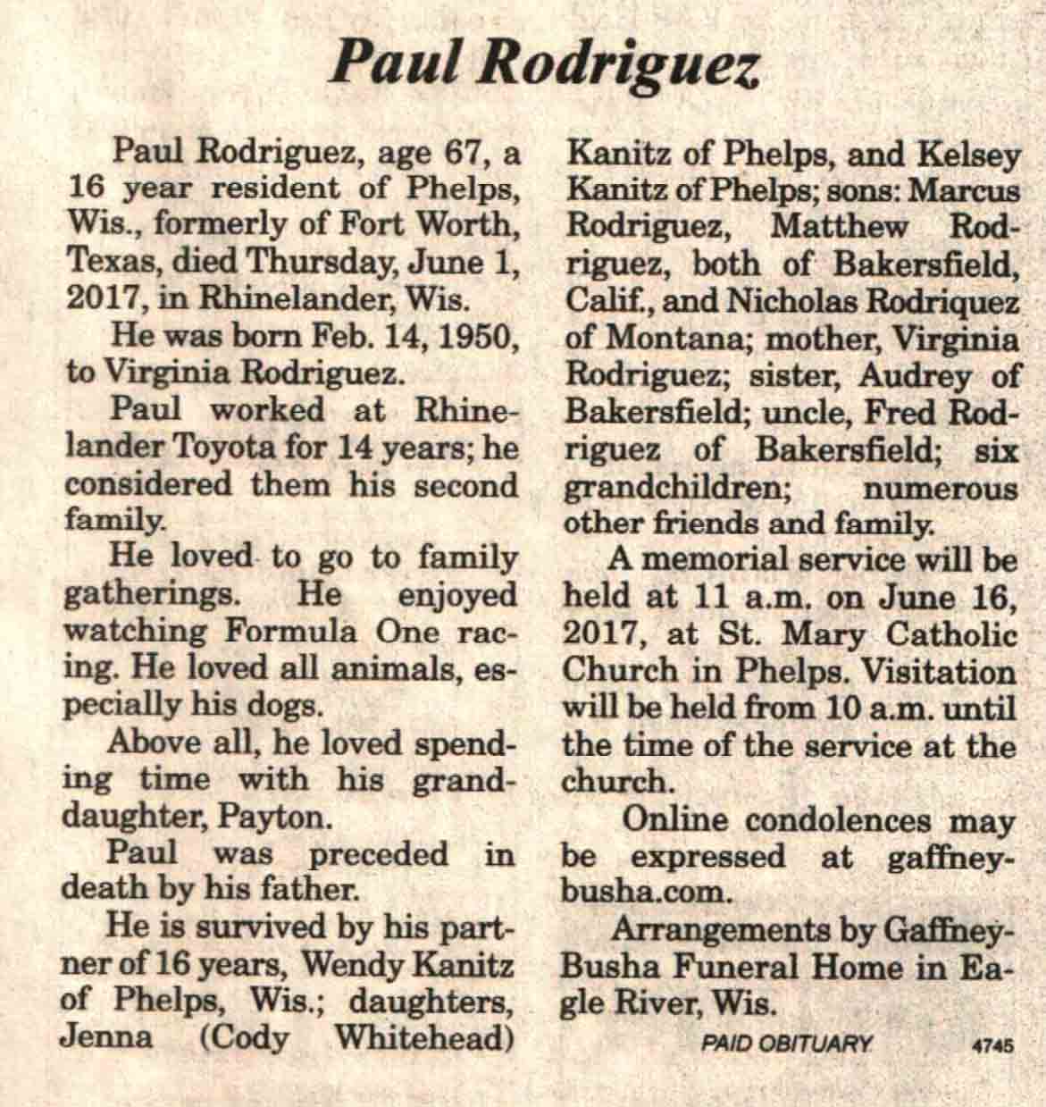 | Rodriguez | Paul | 14 Feb 1950 | 01 Jun 2017 | V N-R | 07 Jun 2017 | 4A |