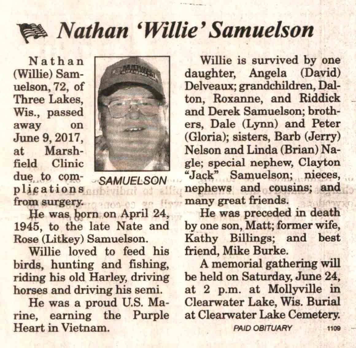 | Samuelson | Nathan 'Willie' | 24 Apr 1945 | 09 Jun 2017 | V N-R | 21 Jun 2017 | 4A |