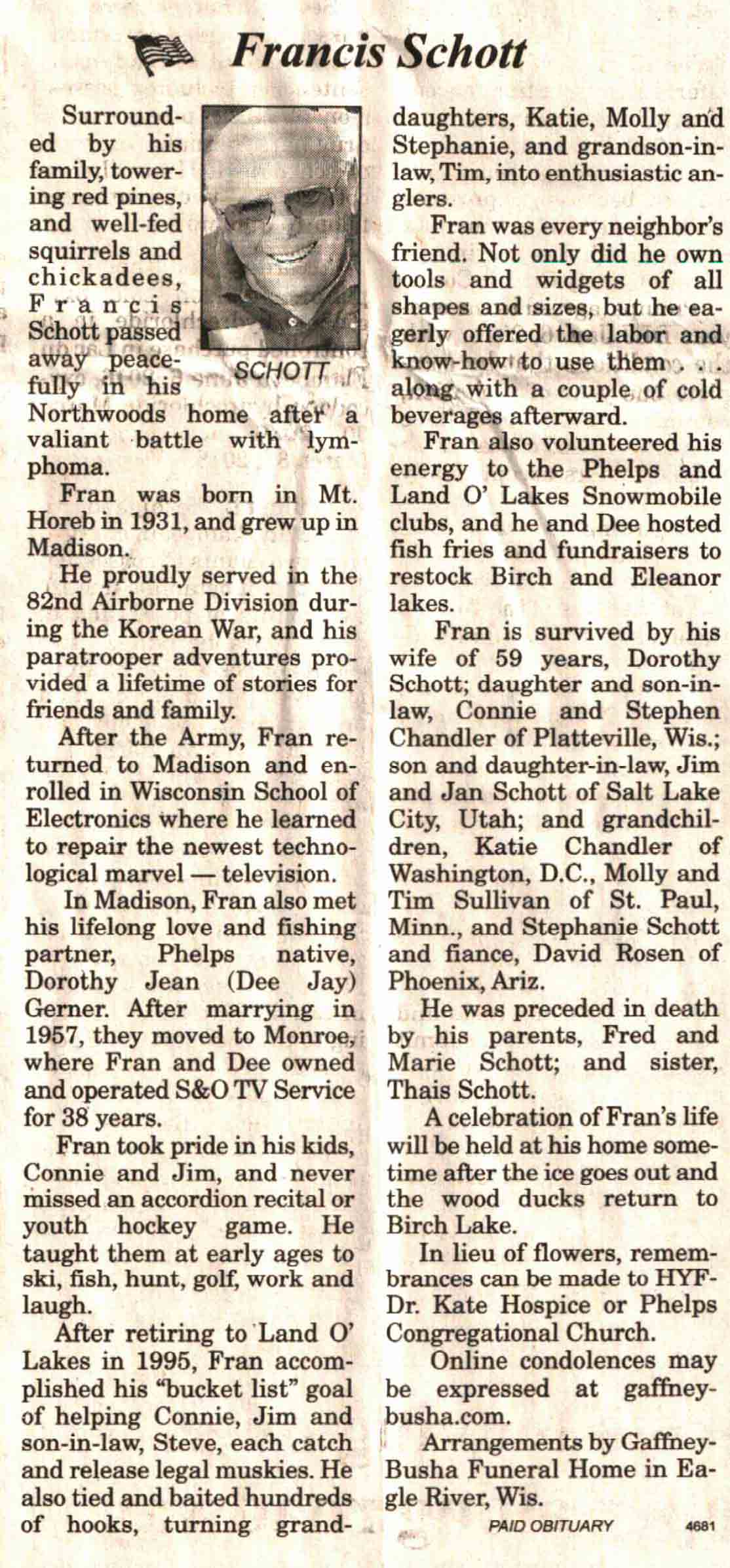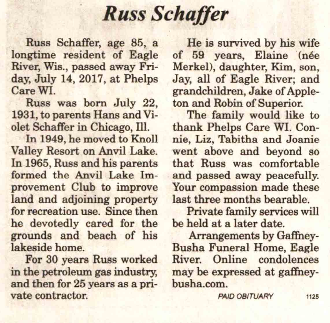 | Schaffer | Russ | 22 Jul 1931 | 14 Jul 2017 | V N-R | 19 Jul 2017 | 4A |