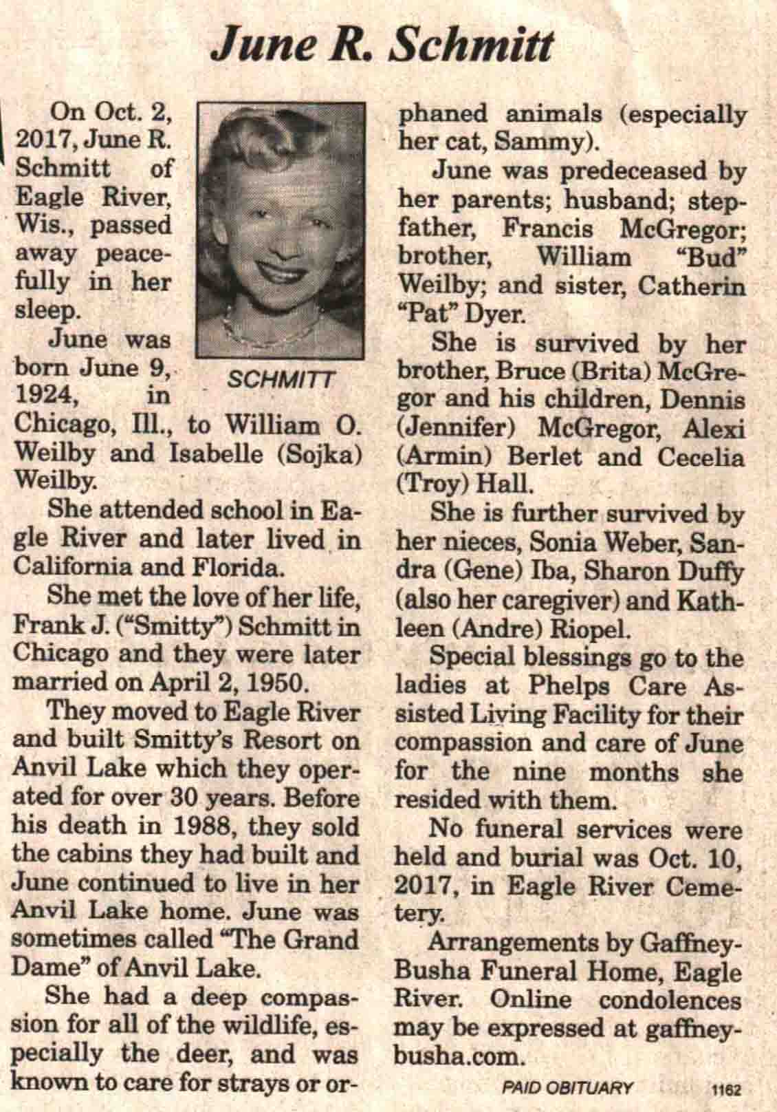 | Schmitt | June R (Weilby) | 09 Jun 1924 | 02 Oct 2017 | V N-R | 11 Oct 2017 | 4A |