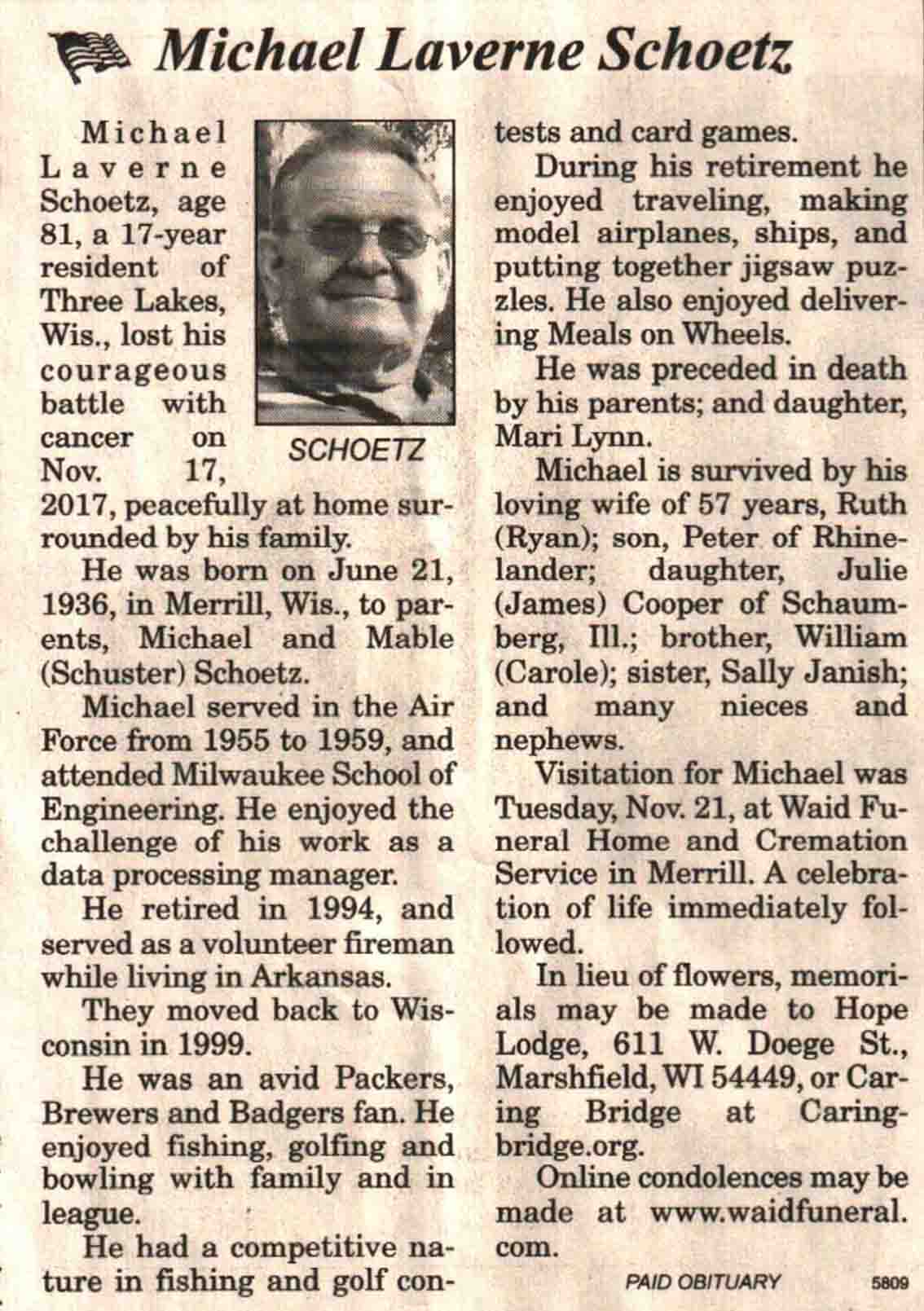 | Schoetz | Michael Laverne | 21 Jun 1936 | 17 Nov 2017 | V N-R | 22 Nov 2017 | 4A |