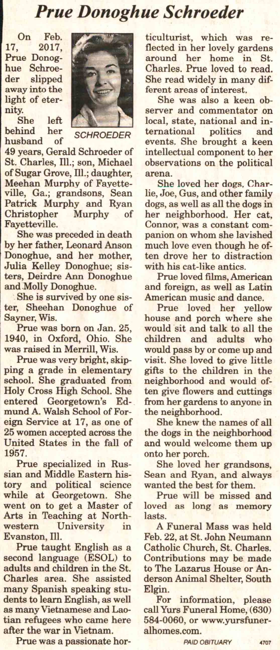| Schroeder | Prue (Donoghue) | 25 Jan 1940 | 17 Feb 2017 | V N-R | 22 Feb 2017 | 4A |