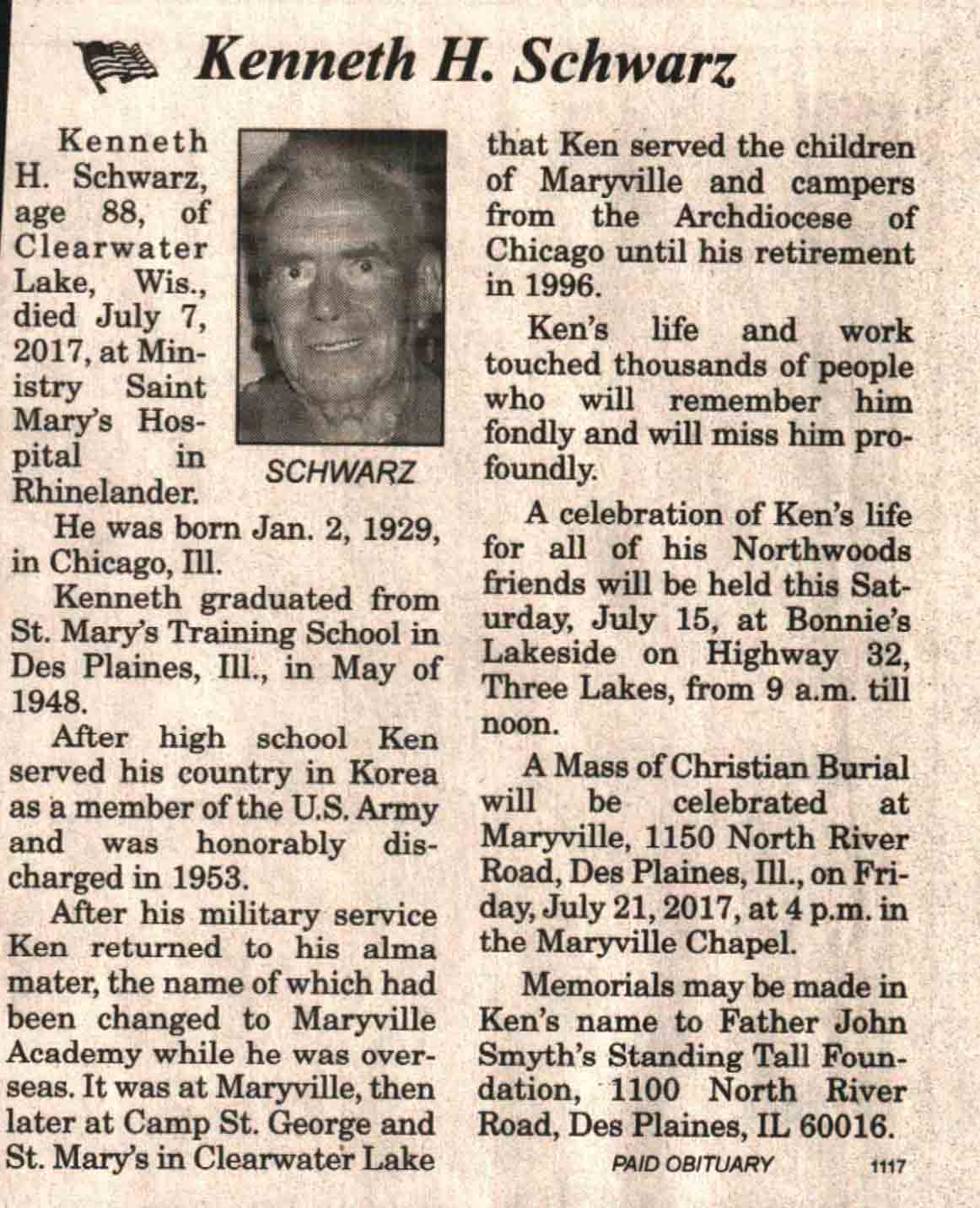 | Schwartz | Kenneth H | 02 Jan 1929 | 07 Jul 2017 | V N-R | 12 Jul 2017 | 4A |