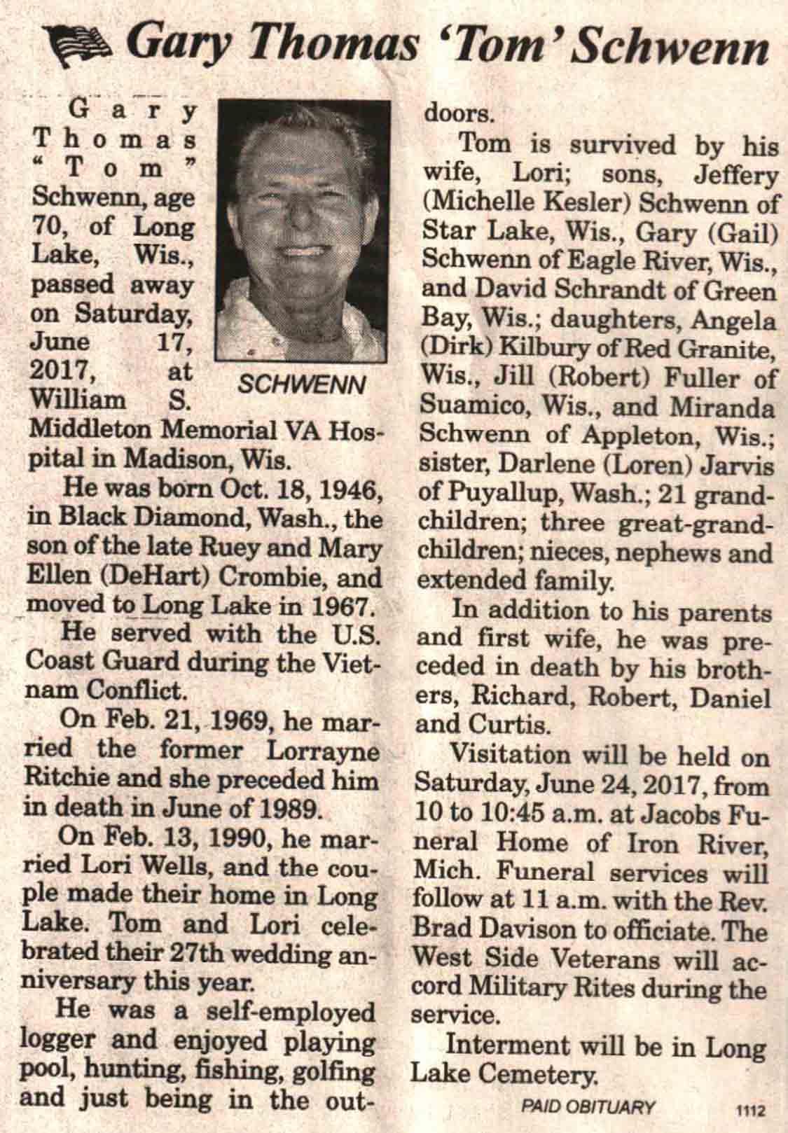 | Schwenn | Gary Thomas 'Tom' | 18 Oct 1946 | 17 Jun 2017 | V N-R | 21 Jun 2017 | 4A |