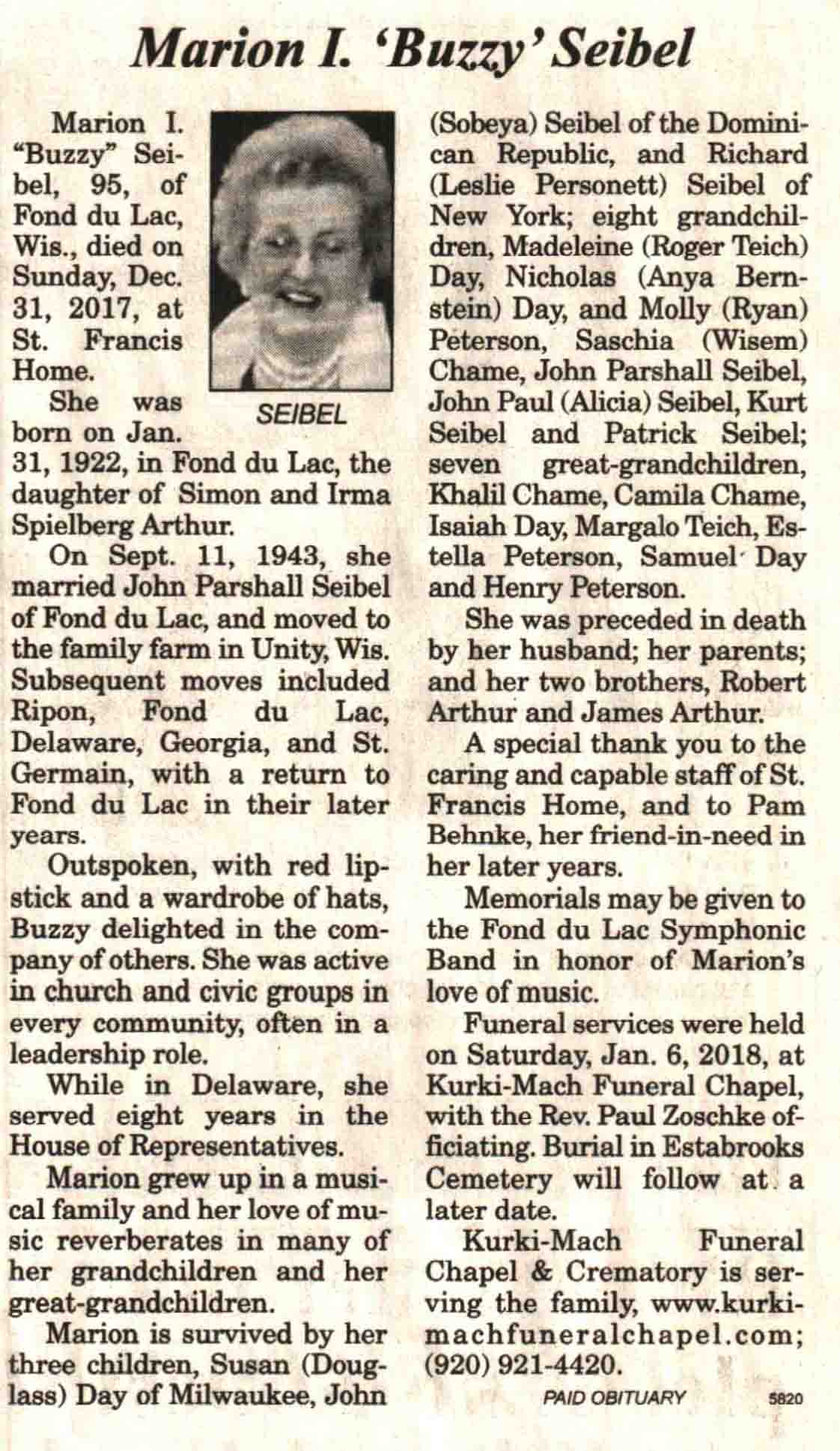 | Seibel | Marion I 'Buzzy' (Arthur) | 31 Jan 1922 | 31 Dec 2017 | V N-R | 10 Jan 2018 | 4 |
