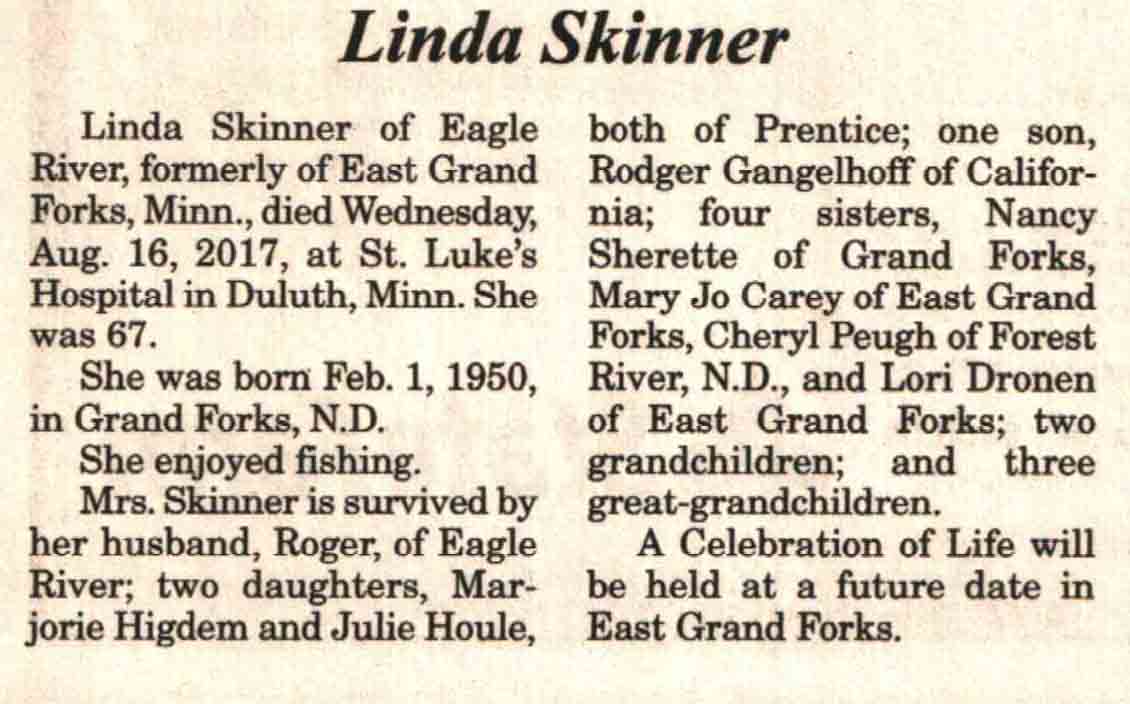 | Skinner | Linda | 01 Feb 1950 | 16 Aug 2017 | V N-R | 23 Aug 2017 | 4A |