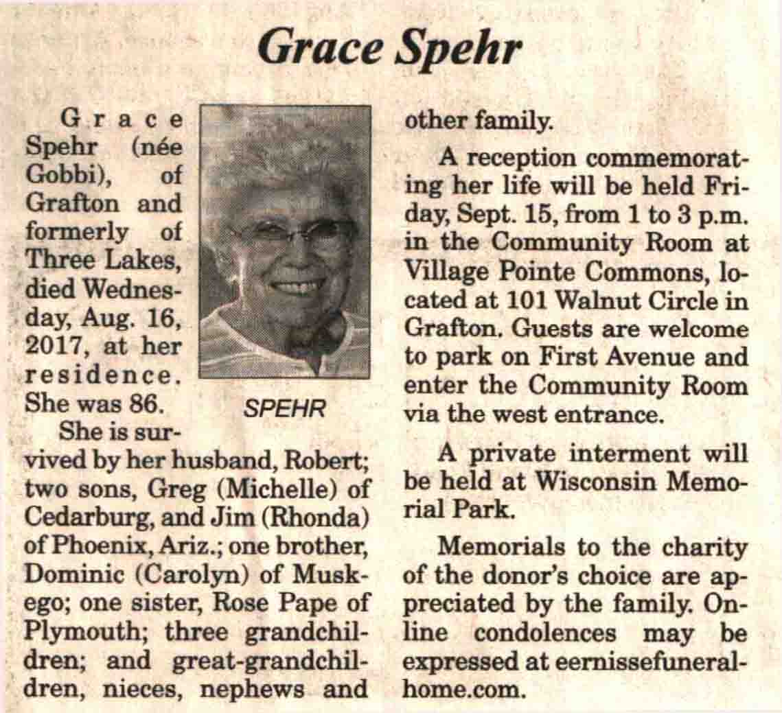 | Spehr | Grace (Gobbi) | c 1931 | 16 Aug 2017 | V N-R | 30 Aug 2017 | 4A |