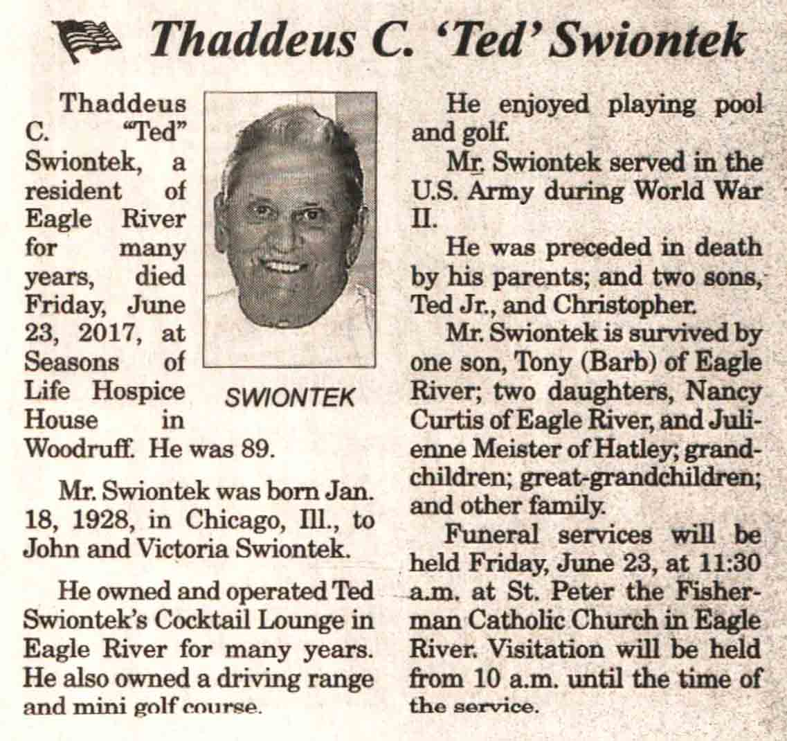 | Swiontek | Thaddeus C 'Ted' | 18 Jan 1928 | 23 Jun 2017 | V N-R | 28 Jun 2017 | 4A |