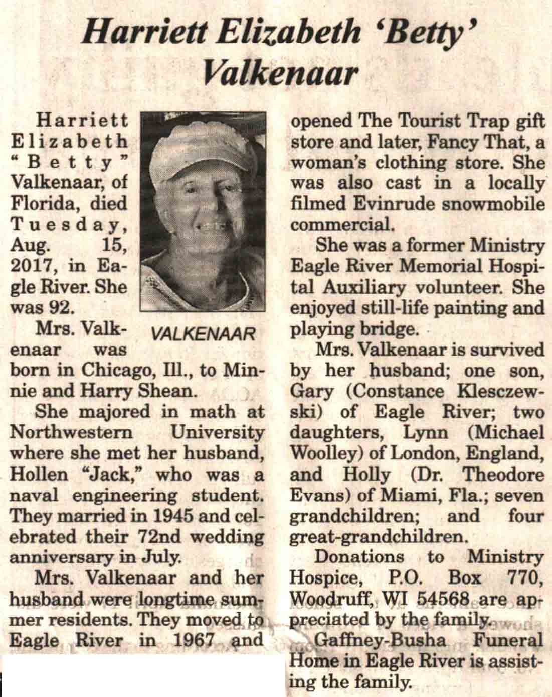 | Valkenaar | Harriett Elizabeth 'Betty' (Shean) | c 1925 | 15 Aug 2017 | V N-R | 23 Aug 2017 | 4A |