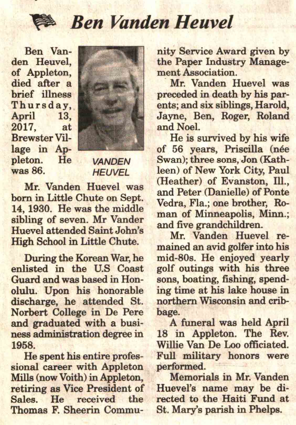 | Vanden Heuvel | Ben | 14 Sep 1930 | 13 Apr 2017 | V N-R | 19 Apr 2017 | 4 |