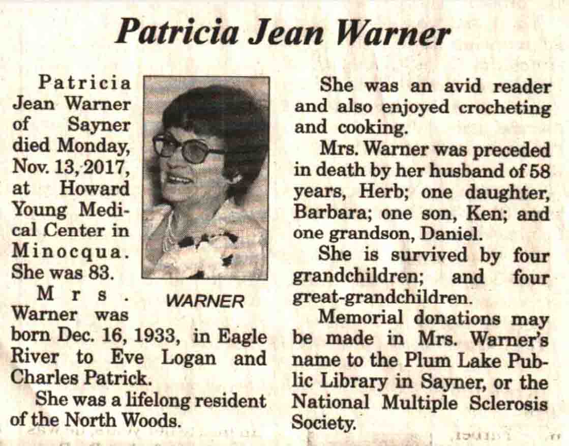 | Warner | Patricia Jean (Patrick) | 16 Dec 2003 | 13 Nov 2017 | V N-R | 24 Jan 2018 | 7A |