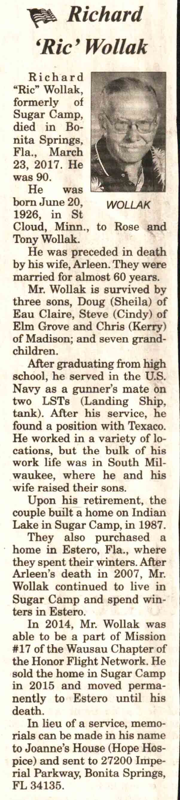 | Wollak | Richard 'Ric' | 20 Jun 1926 | 23 Mar 2017 | V N-R | 12 Apr 2017 | 4 |