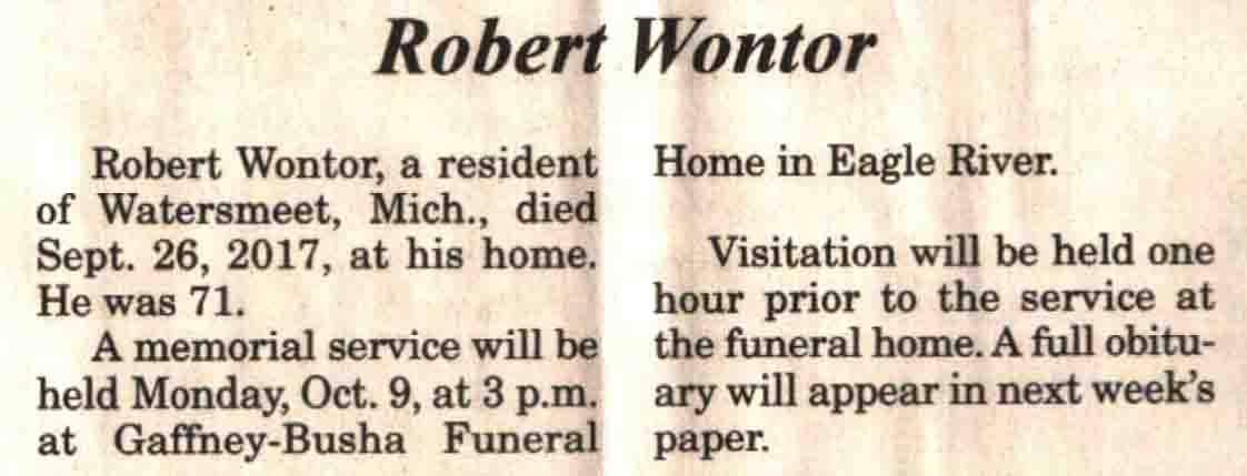 | Wontor | Robert | c 1946 | 26 Sep 2017 | V N-R | 04 Oct 2017 | 4A |