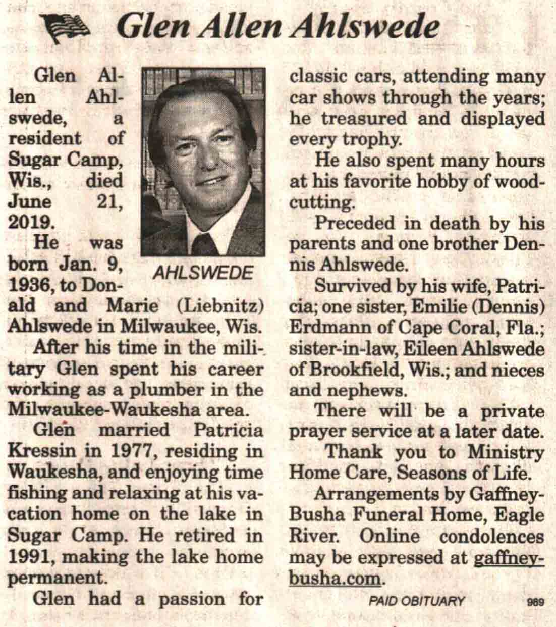 | Ahlswede | Jerome 'Jerry' #2 | c 1959 | 22 Mar 2019 | V-NR | 03 Apr 2019 | 4 |