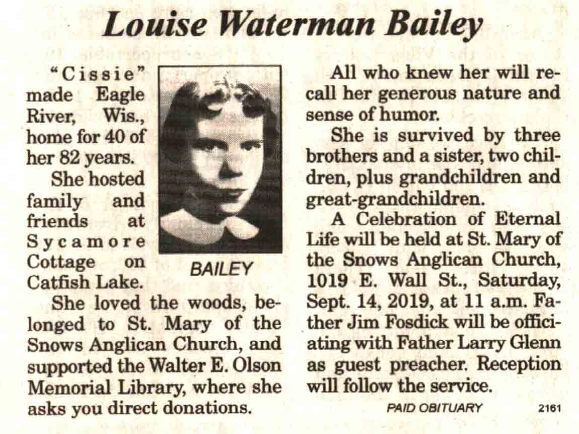 | Bailey | Louise Waterman #2 | c 1937 | c 2019 | V-NR | 25 Sep 2019 | 4A |