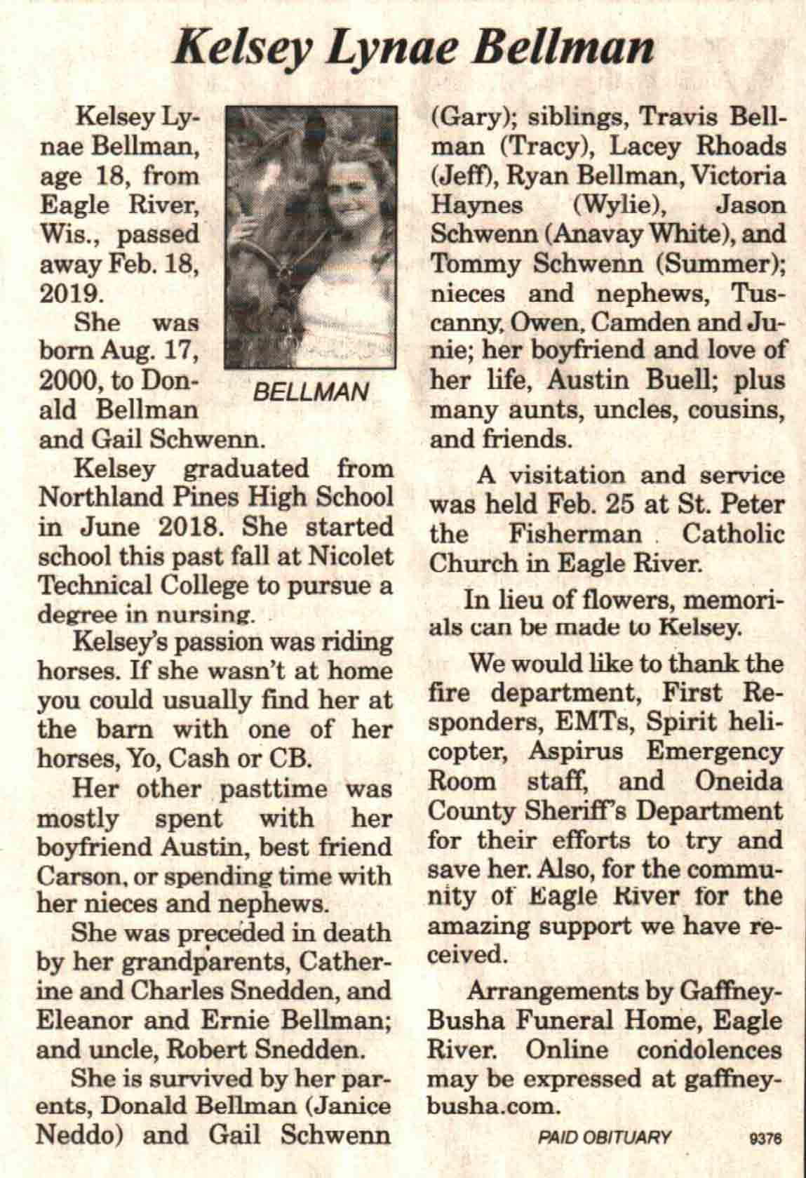 | Bellman | Kelsey Lynae | 17 Aug 2000 | 18 Feb 2019 | V-NR | 27 Feb 2019 | 4A |
