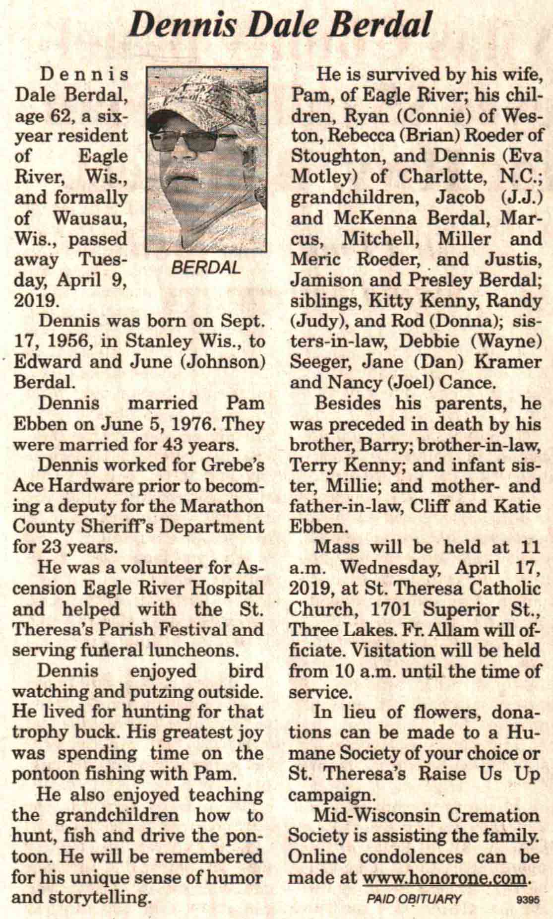 | Berdal | Dennis Dale | 19 Jul 1956 | 09 Apr 2019 | V-NR | 17 Apr 2019 | 4A |