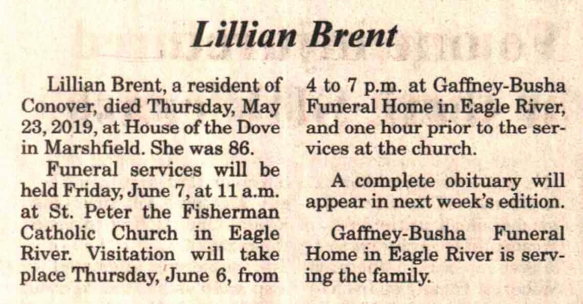 | Brent | Lillian Adeline (Kosidowski) #2 | 14 Oct 1932 | 23 May 2019 | V-NR | 05 Jun 2019 | 4A |