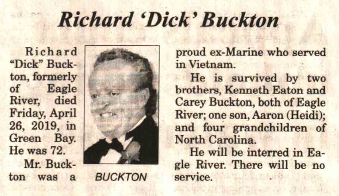 | Buckton | Richard 'Dick' | c 1947 | 26 Apr 2019 | V-NR | 01 May 2019 | 4A |