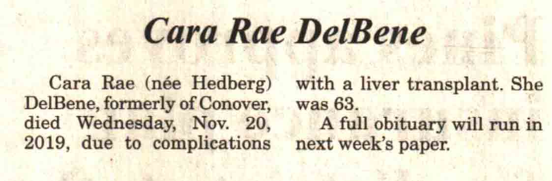 | DelBene | Cara Rae (Hedberg) #1 | c 1956 | 20 Nov 2019 | V-NR | 27 Nov 2019 | 4A |
