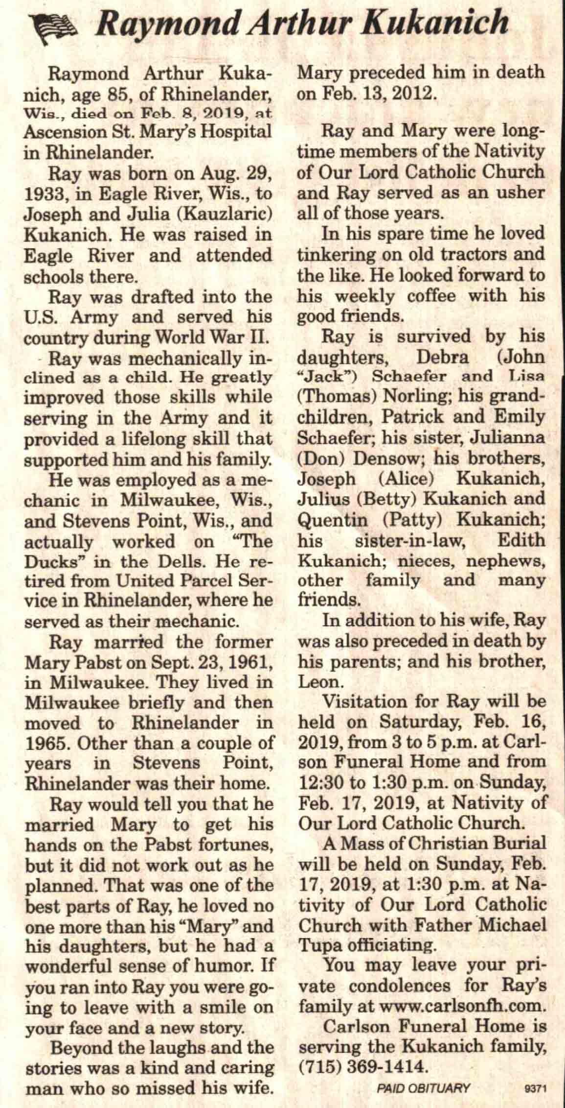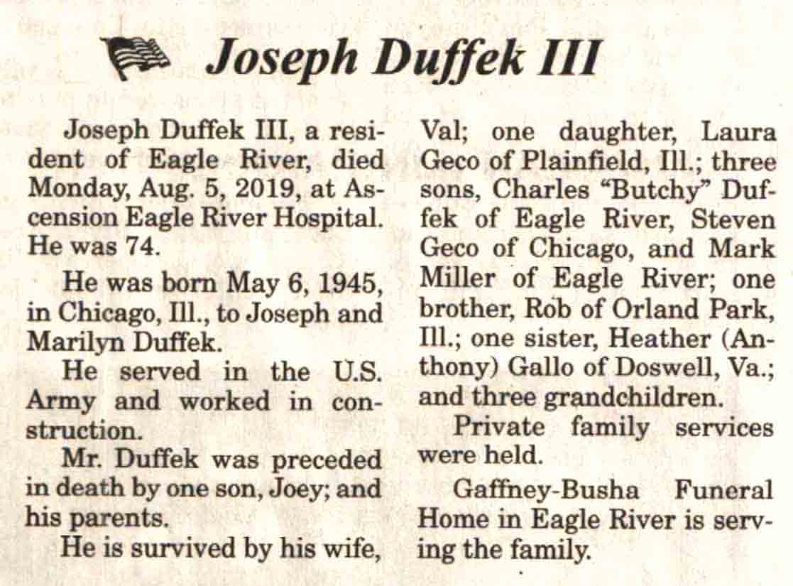 | Duffek | Joseph, III | 06 May 1945 | 05 Aug 2019 | V-NR | 14 Aug 2019 | 4A |
