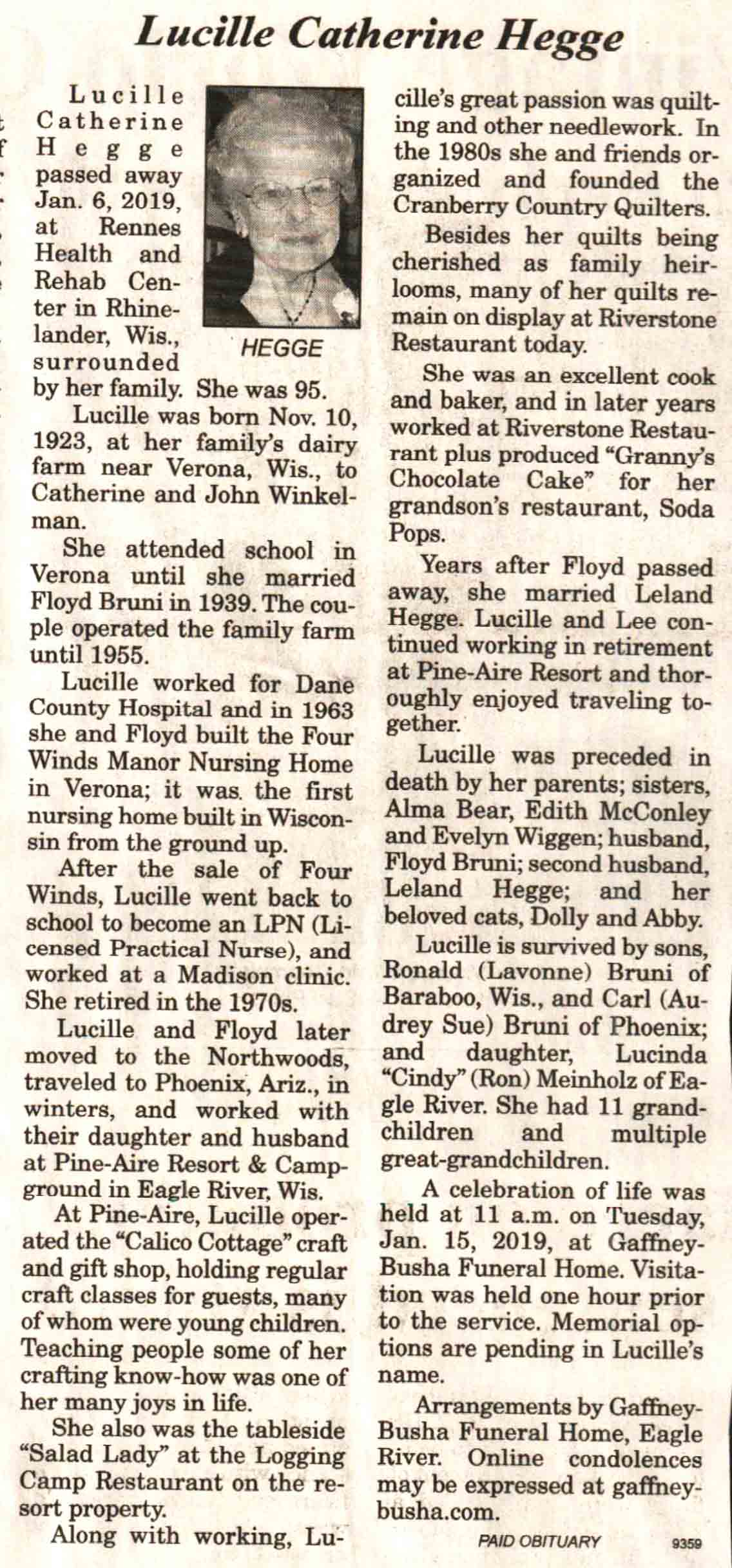 | Christianson | Claire B (Tetzler) | 30 Jan 1924 | 03 May 2019 | V-NR | 15 May 2019 | 4A |