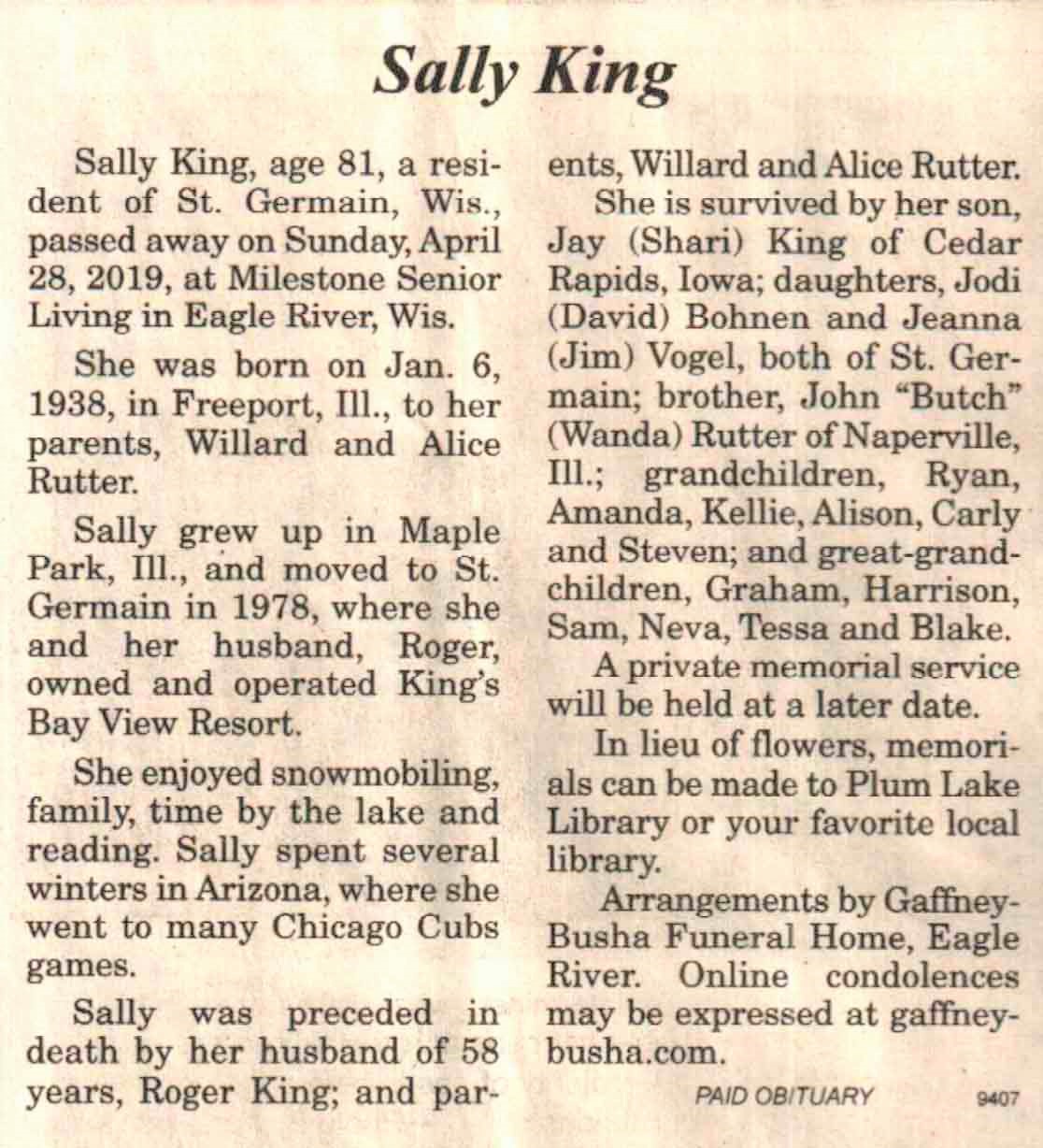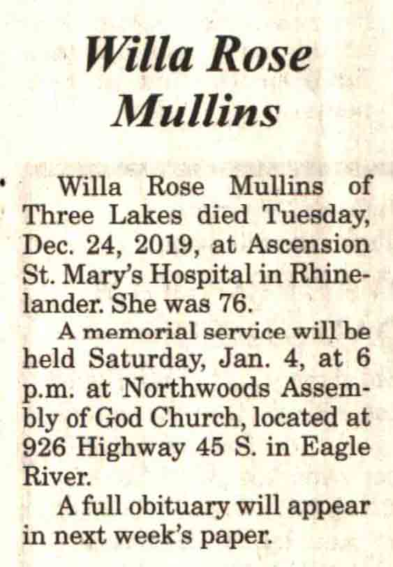 County, WI, Newspaper Obituaries