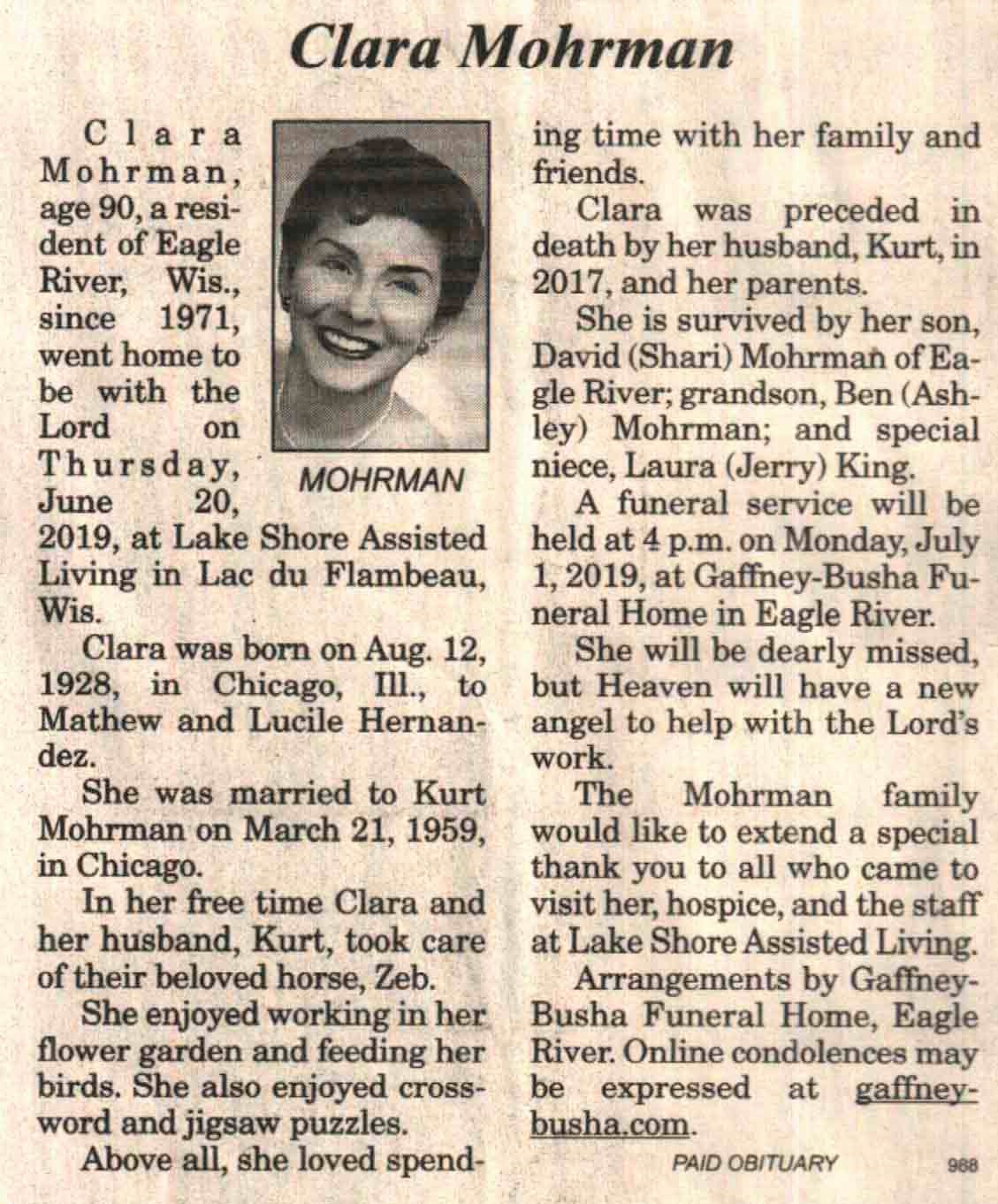 | Biedermann | Maurine M (McCarty) | c 1922 | 21 Dec 2019 | V-NR | 08 Jan 2020 | 4A |