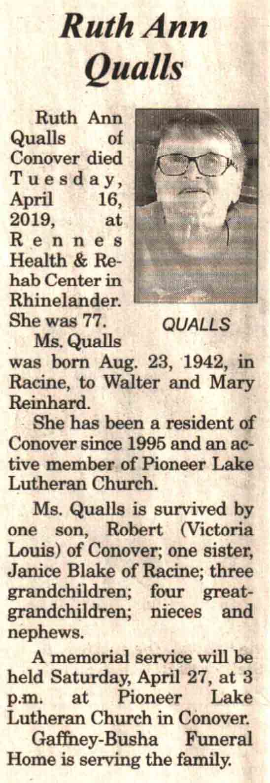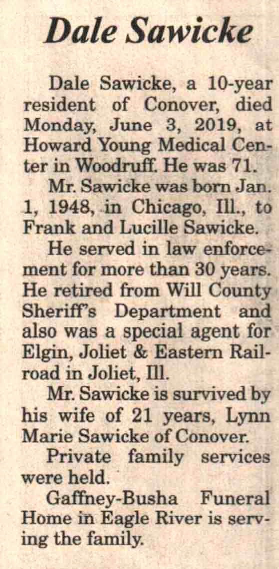 | Sawicke | Dale | 01 Jan 1948 | 03 Jun 2019 | V-NR | 05 Jun 2019 | 4A |