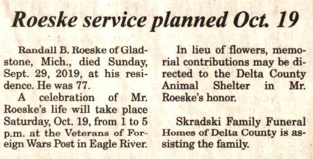 | Roeske | Randall B #1 | 04 Sep 1942 | 29 Sep 2019 | V-NR | 09 Oct 2019 | 4A |