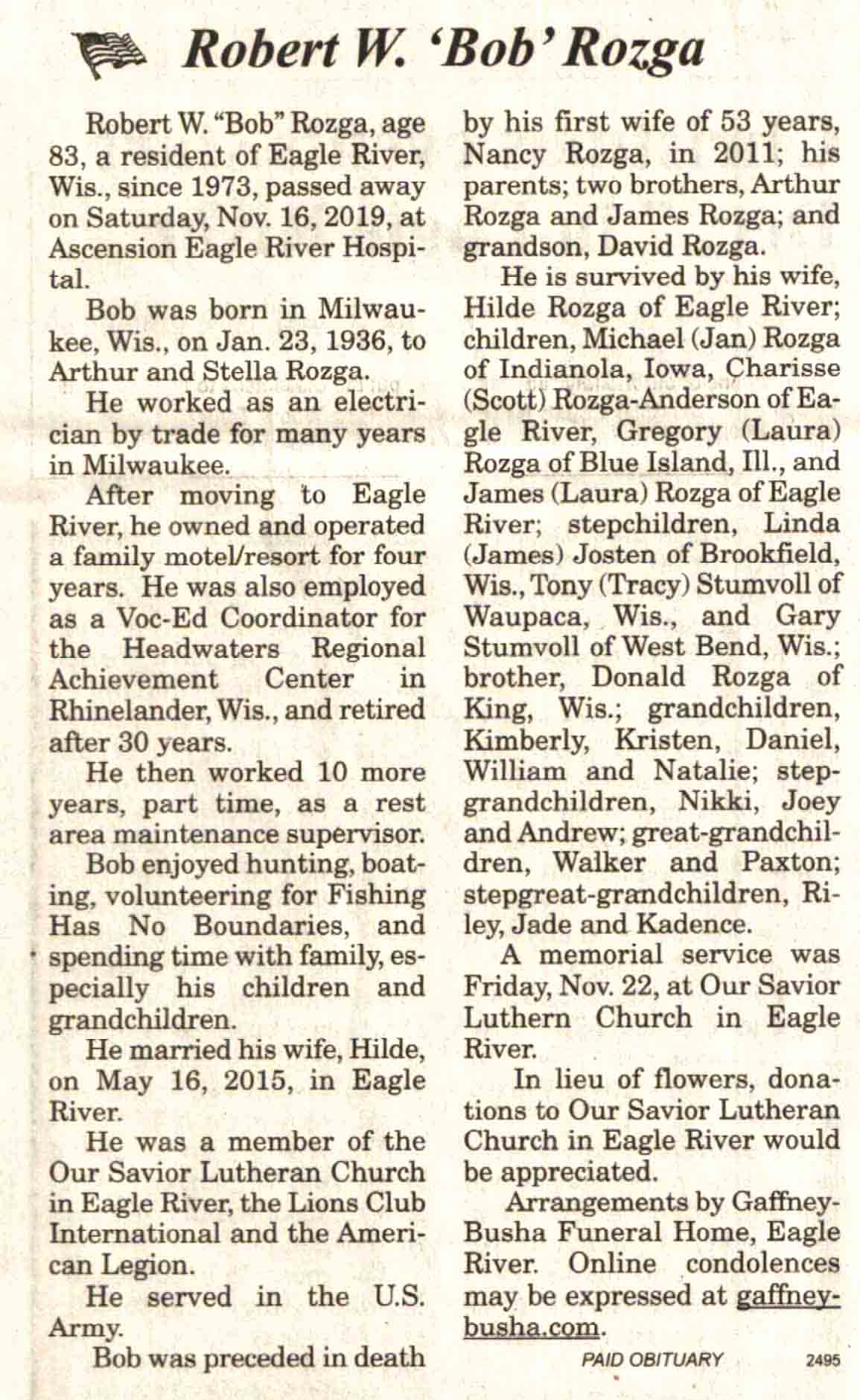 | Rozga | Robert W 'Bob' #2 | 23 Jan 1926 | 16 Nov 2019 | V-NR | 27 Nov 2019 | 4A |