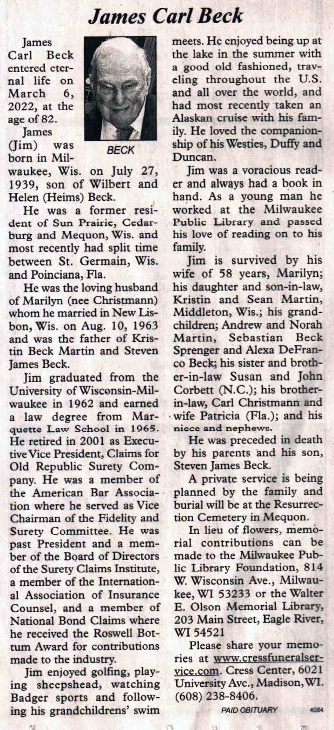 | Beck | James Carl | 27 Jul 1939 | 06 Mar 2022 | VCNR | 16 Mar 2022 | 5A |