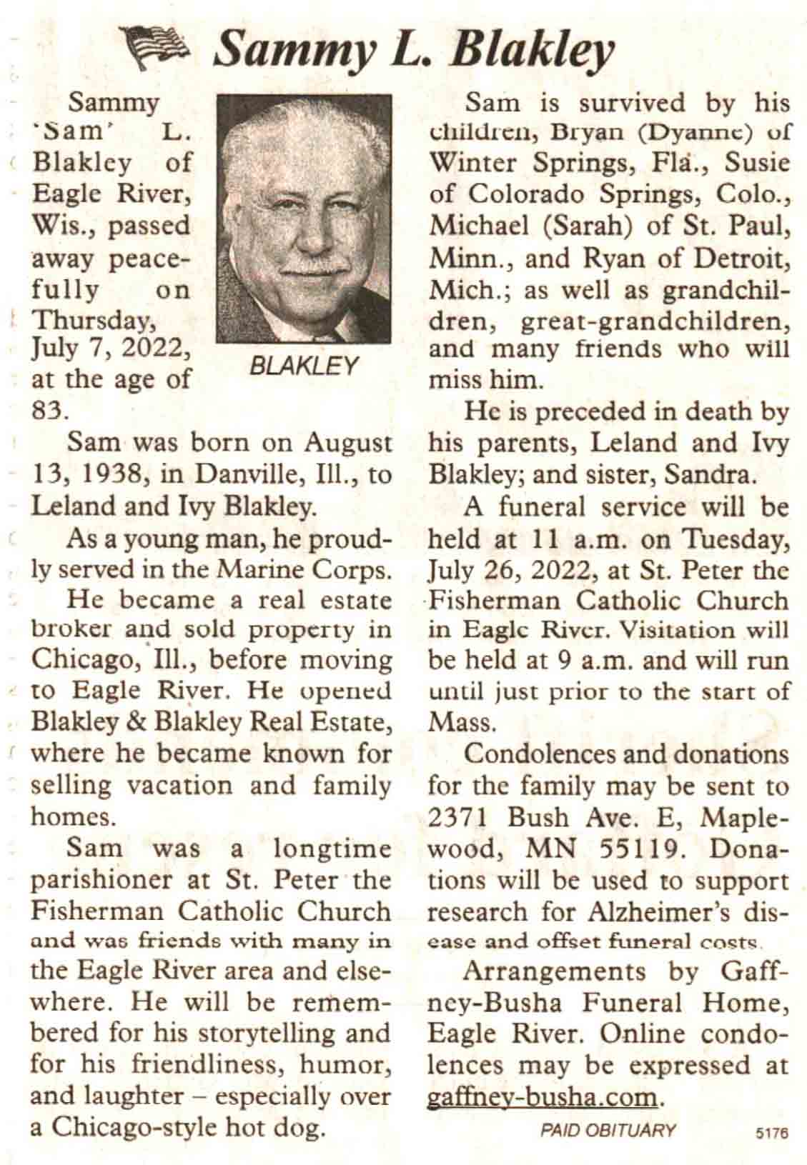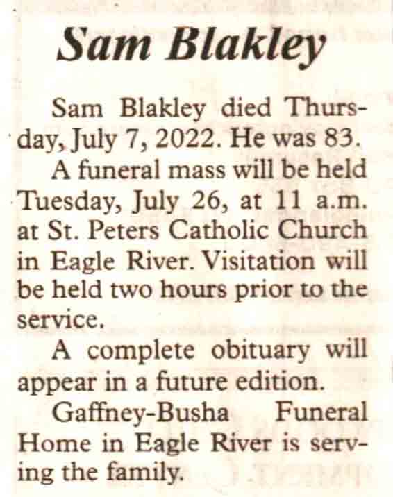 | Blakley | Sam #1 | c 1939 | 07 Jul 2022 | VCNR | 13 Jul 2022 | 5A |