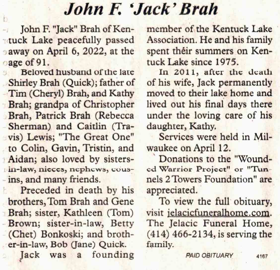 | Brah | John F 'Jack' | c 1931 | 06 Apr 2022 | VCNR | 13 Apr 2022 | 4A |