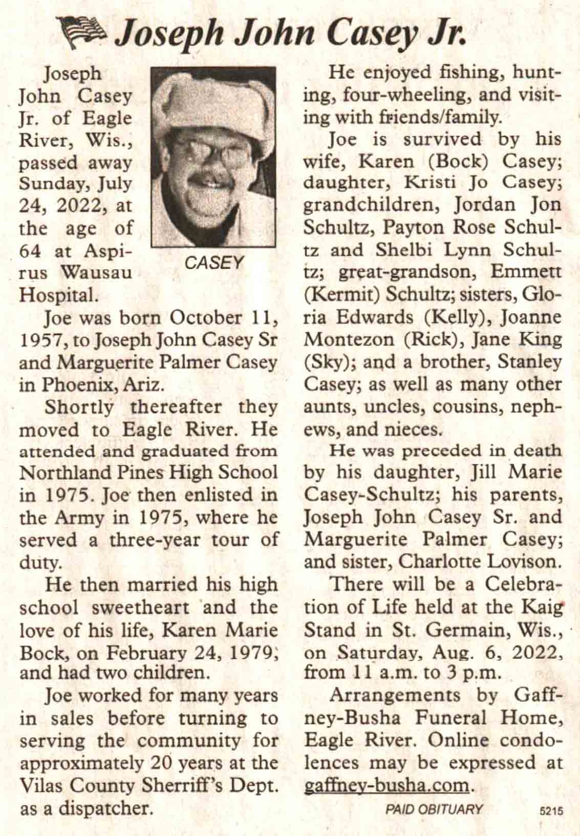 | Casey | Joseph John, Jr #2 | 11 Oct 1957 | 24 Jul 2022 | VCNR | 03 Aug 2022 | 4A |