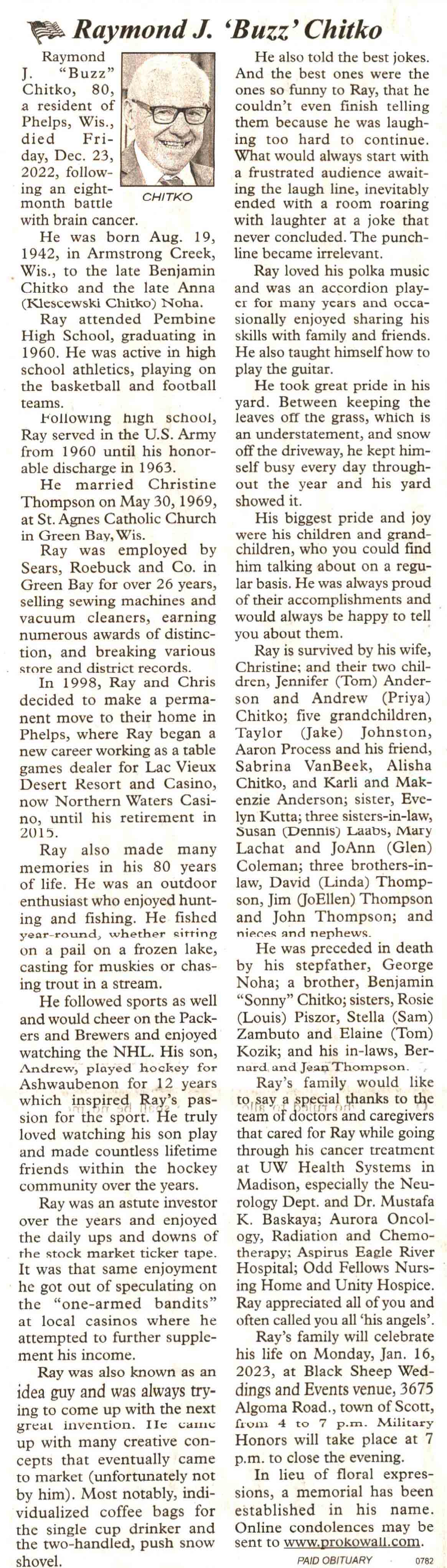 | Chitko | Raymond J 'Buzz' | 19 Aug 1942 | 23 Dec 2022 | VCNR | 11 Jan 2023 | 4A |