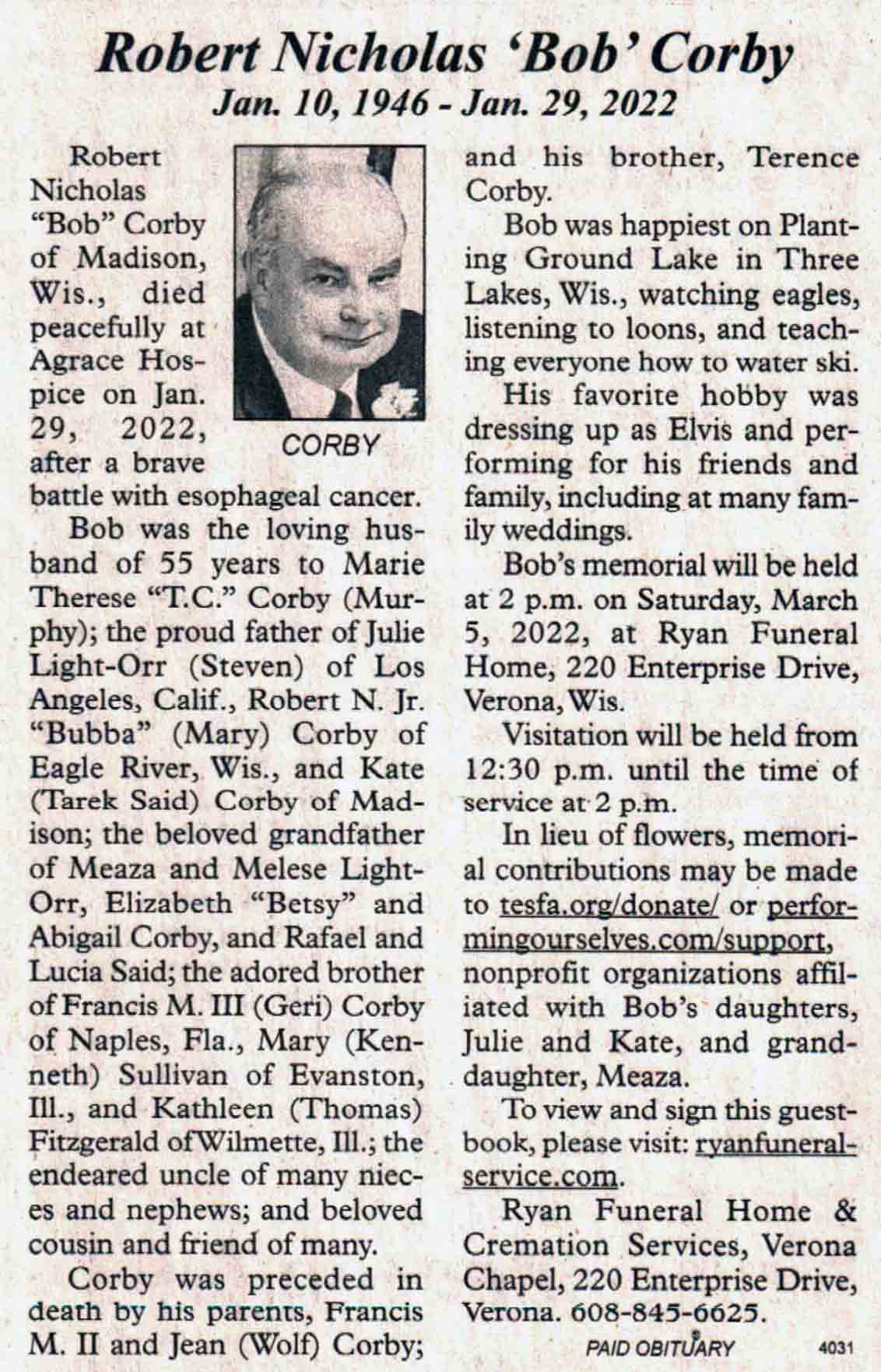 | Corby | Robert Nicholas 'Bob' | 10 Jan 1946 | 29 Jan 2022 | VCNR | 02 Mar 2022 | 4A |