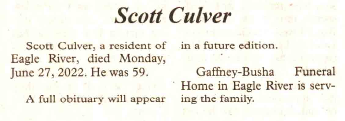 | Culver | Scott | c 1963 | 27 Jun 2022 | VCNR | 06 Jul 2022 | 4A |