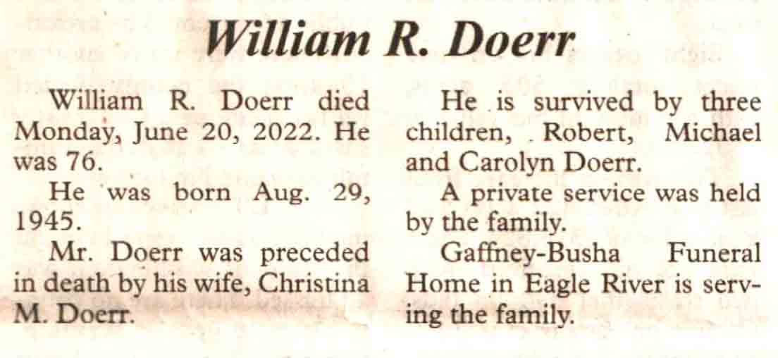 | Doerr | William R | 29 Aug 1945 | 20 Jun 2022 | VCNR | 13 Jul 2022 | 4A |