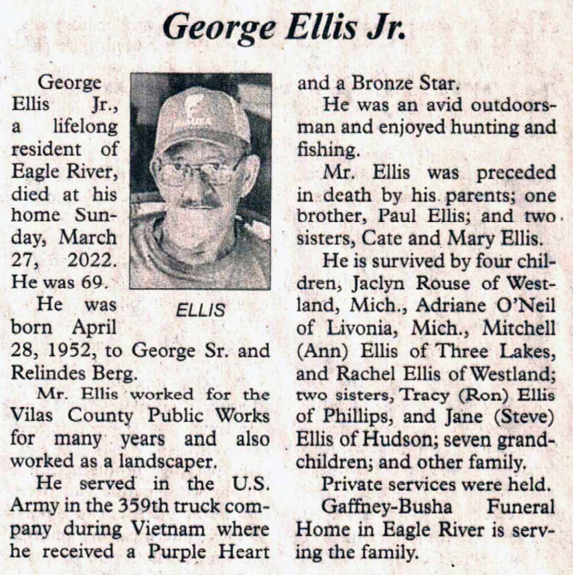 | Ellis | George, Jr | 28 Apr 1952 | 27 Mar 2022 | VCNR | 06 Apr 2022 | 4A |
