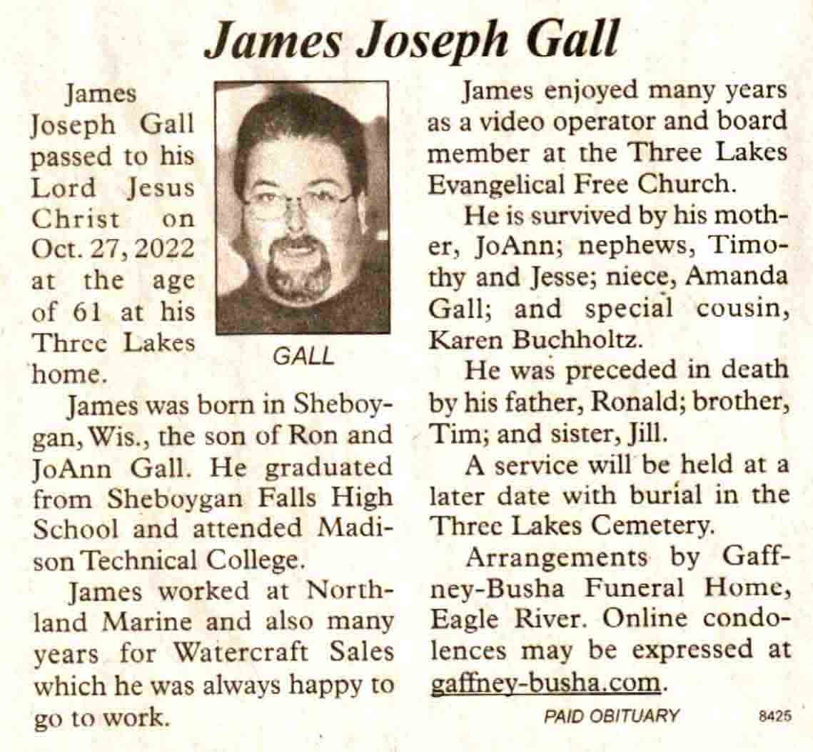 | Gall | James Joseph | c 1961 | 27 Oct 2022 | VCNR | 02 Nov 2022 | 4A |