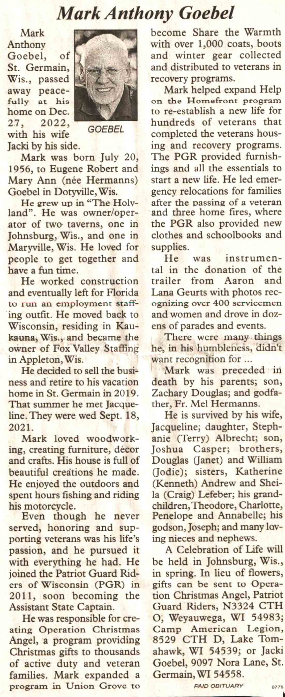 | Goebel | Mark Anthony | 20 Jul 1956 | 27 Dec 2022 | VCNR | 04 Jan 2023 | 6A |