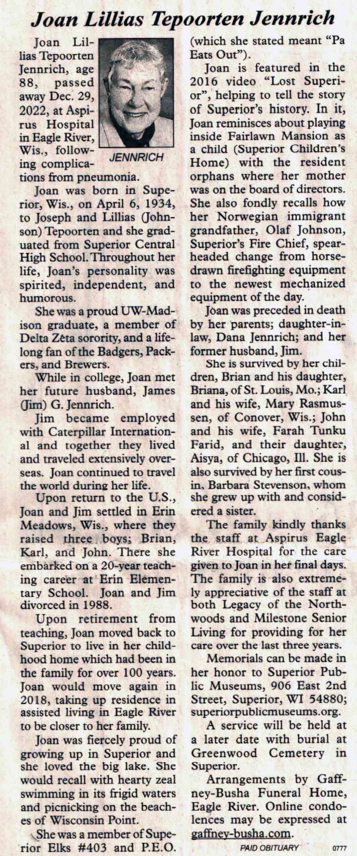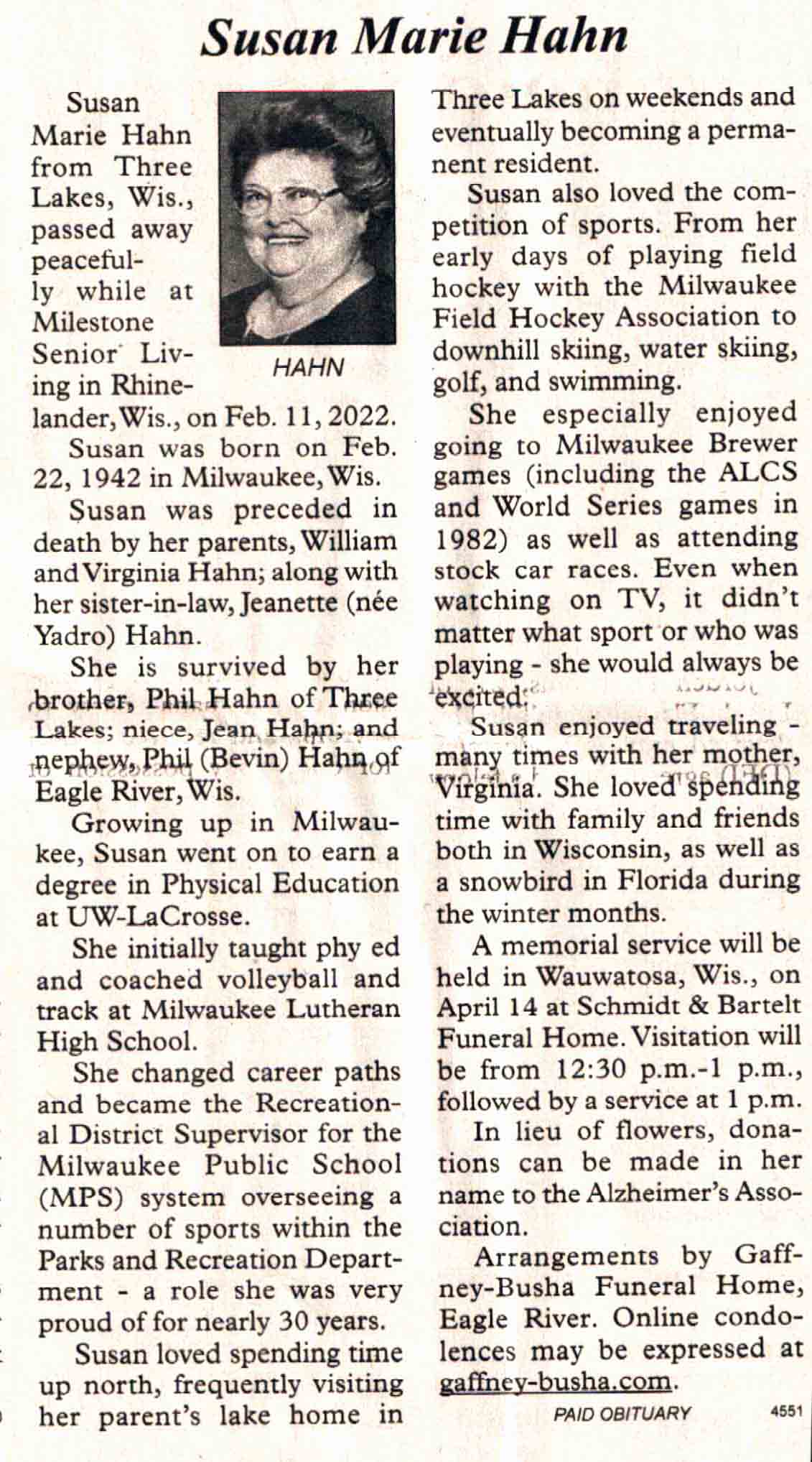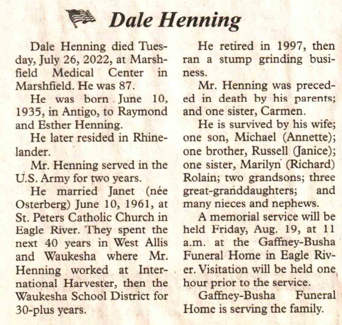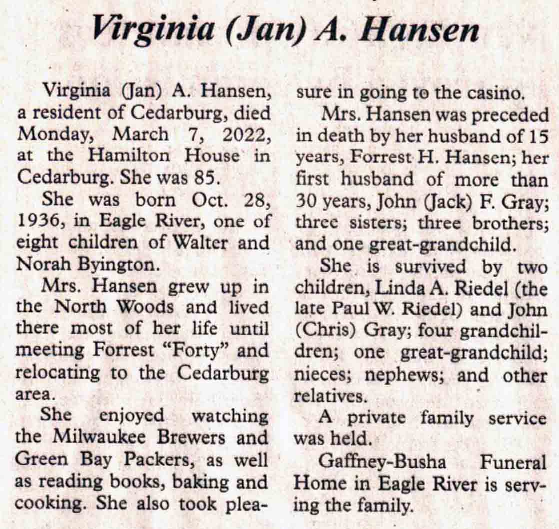 | Dominkowski | Maxine A (Jarvi) | 25 Sep 1941 | 13 Jun 2022 | VCNR | 22 Jun 2022 | 4A |