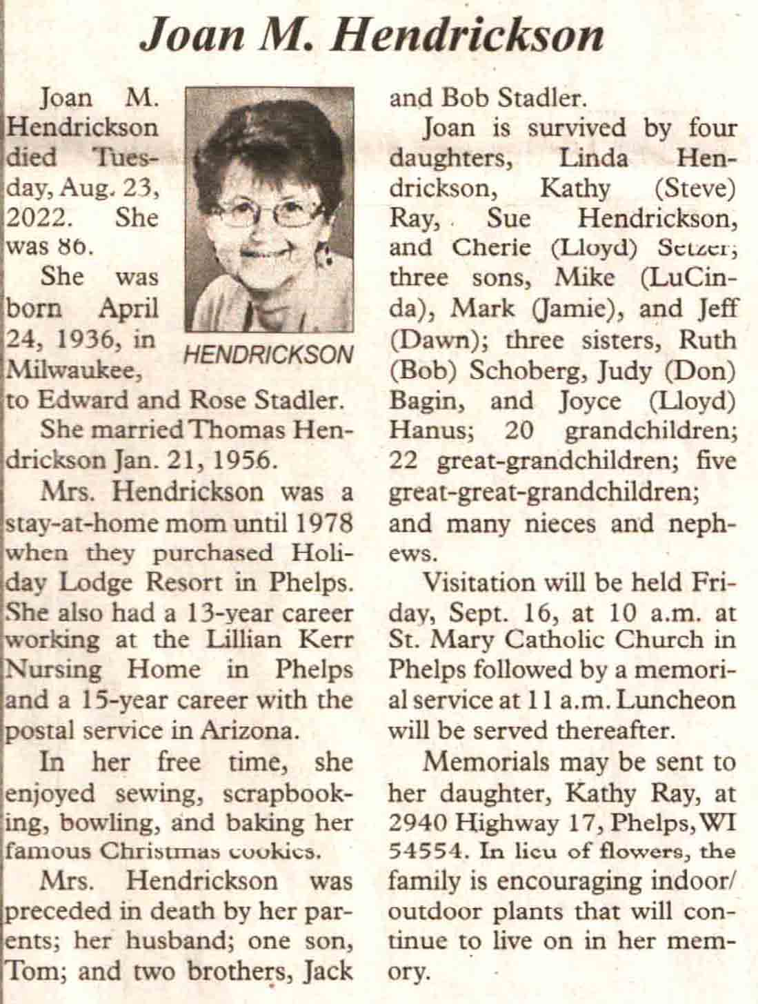 | Schlack | Sally Ann (Dussault) | 12 Apr 1935 | 07 Oct 2022 | VCNR | 19 Oct 2022 | 4A |