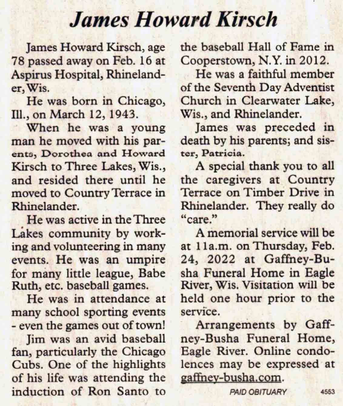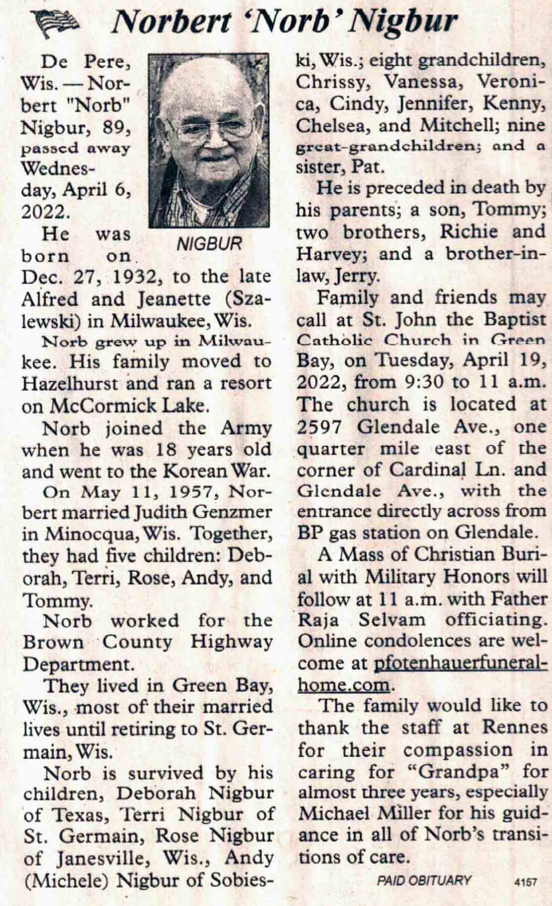 | vonKluck | Kenneth A | c 1944 | 10 Feb 2022 | VCNR | 23 Feb 2022 | 4A |